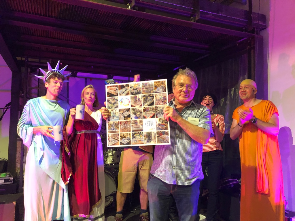 Daran erinnerten auch einige Autoren der ersten Stunde, darunter Eberhard Fohrer und Hans-Peter Siebenhaar, die zum Amusement der Gäste aus dem Nähkästchen der Anfangsjahre plauderten. Betont wurde aber auch das digitale Engagement von Michael Müller, der als „Bill Gates des deutschen Reiseführers“ gilt, weil er, so Autor Ralf Nestmayer mit einem Augenzwinkern, „das digitale Zeitalter nicht nur erahnt, sondern erschaffen hat“. Und das Vertriebsteam von Travel House Media, seit 2009 Vertriebspartner von Michael Müller, hatte sogar einen Sketch eingeübt, mit dem es bekannte Sehenswürdigkeiten aus aller Welt zu Wort kommen ließ. Am Ende gab es für den Verlagsgründer eine Kollage aus Buchhandelsfotos, auf denen die MM-Titel dekoriert waren.