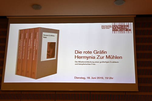 Sylvia Asmus, Leiterin des Deutschen Exilarchivs 1933 – 1945, begrüßte die Zuhörer: „Die Werkausgabe einer beeindruckenden Frau liegt nun vor. Hermynia Zur Mühlen ist nicht nur mit ihren Arbeiten im Exilarchiv vertreten, unsere Sammlung bewahrt auch eine Personalakte von ihr auf.“ Sie verwies außerdem auf die Biografie Zur Mühlens von Manfred Altner, die 1997 in der Verlagsgruppe Peter Lang, Bern, publiziert wurde.