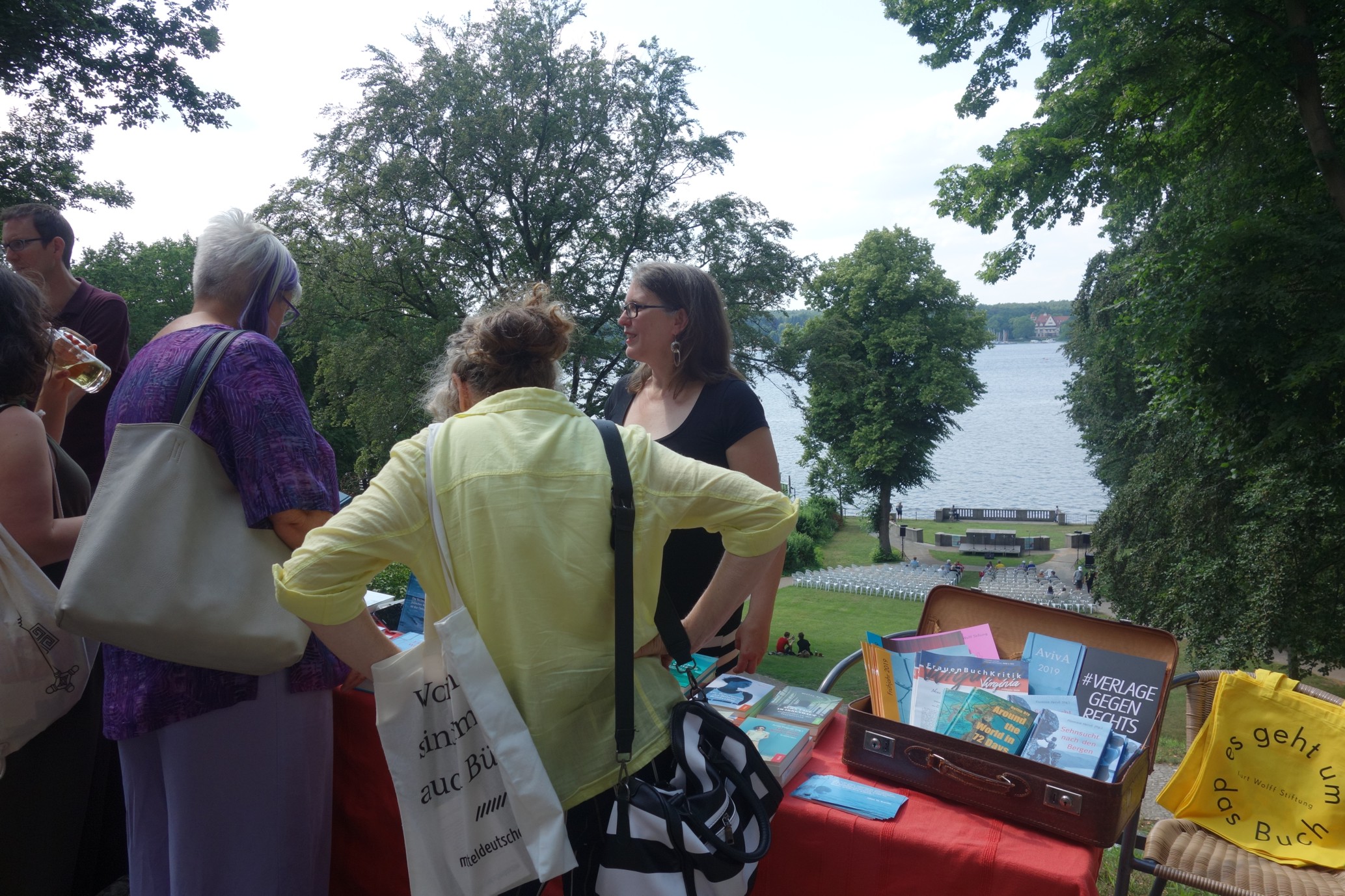 Bereits zum fünfzehnten Mal hat das Literarische Colloquium Berlin (LCB) heute seine Türen für die Gartenmesse unabhängiger Verlage geöffnet: Seit 14 Uhr hieß es dort wieder „Kleine Verlage am Großen Wannsee“. 50 Verlage aus dem gesamten deutschsprachigen Raum waren der Einladung gefolgt und zeigten im Rahmen der Gartenmesse einem interessierten und durchaus auch kauflustigen Publikum eine Auswahl ihres Programms.