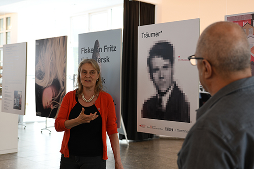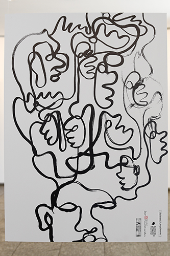 Nil Saegessers Werk verwirrt auf den ersten Blick mit einem Labyrinth aus Linien, das auf den zweiten Blick Köpfe und Rentiergeweihe erkennen lässt. „Das Plakat ist ein echter Störer, man muss ein zweites Mal hinschauen“, bemerkte Eibes. „Eigentlich ist es verkehrt herum aufgehängt, ich wollte, dass die Träume aus den Köpfen fallen“, erklärte Saegesser und evoziert damit allgemeine Heiterkeit.