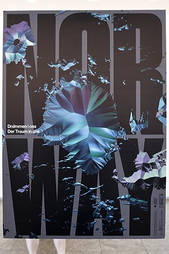 „Ich wollte den Traum in uns darstellen“, erklärte Paul Eßer, Hochschule Mainz, zu seiner Arbeit. Er hat das verpixelte Passfoto des norwegischen Dichters Olav H. Hauge (1908 bis 1994) in den Mittelpunkt seines Entwurfs gestellt. Das Ehrengast-Motto Der Traum in uns geht auf das gleichnamige Gedicht Hauges zurück. 2016 wählten Leser und Zuschauer des norwegischen Senders NRK diese Verse zum bedeutendsten norwegischen Gedicht aller Zeiten. Hauge, eigentlich ein Obstbauer, übersetzte außerdem Gedichte aus dem Deutschen, Englischen und Französischen.