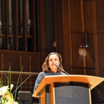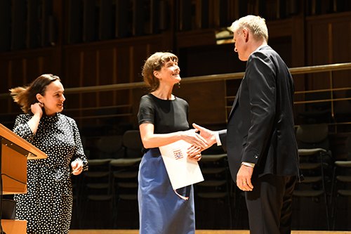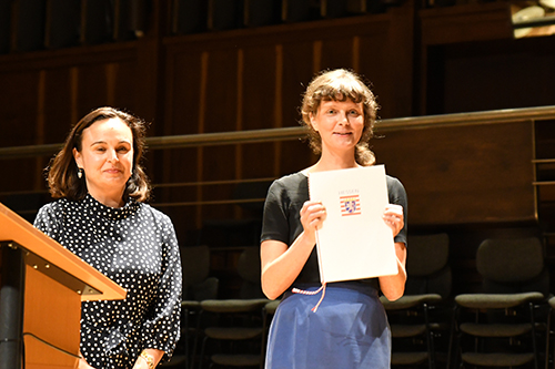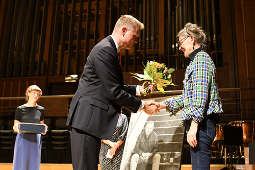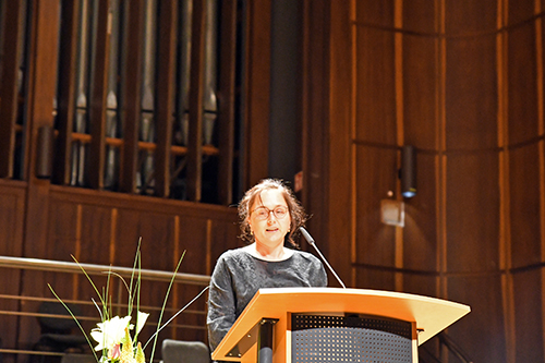 Nach der Übergabe der Urkunde des mit 12.000 Euro dotierten elften Robert Gernhardt Preises bedankte sich die Ausgezeichnete: „Das Geld bedeutet, dass man Zeit geschenkt bekommt. Dafür bin ich dankbar. Gleichzeitig ist es auch ein bisschen unheimlich.“