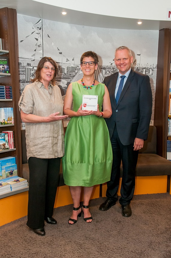 Die Vorstandsvorsitzende im Landesverband Nord, Branka Felba; sagte in der Laudatio: „Anne von Bestenbostel schafft es mit ihrem Fünfköpfigen Team, der Stadt Nordenham und der gesamten Wesermarch Literatur nahe zu bringen. Sie inszeniert die Buchhandlung als Ort der Begegnung und des Austausches, eine literarische Wohlfühlzone.“