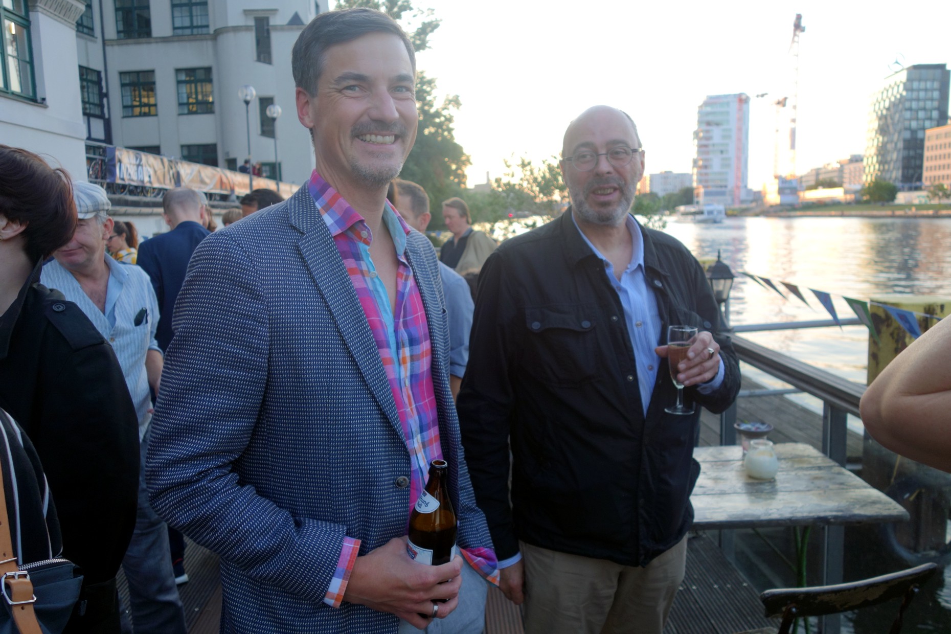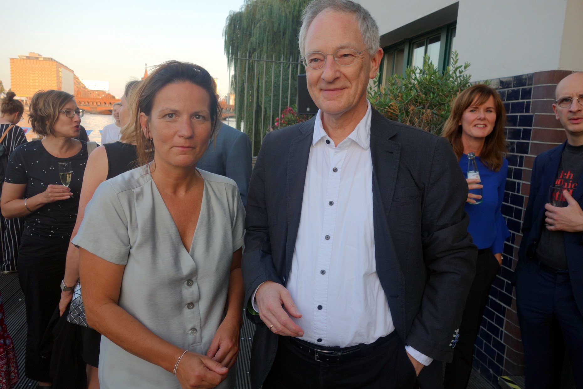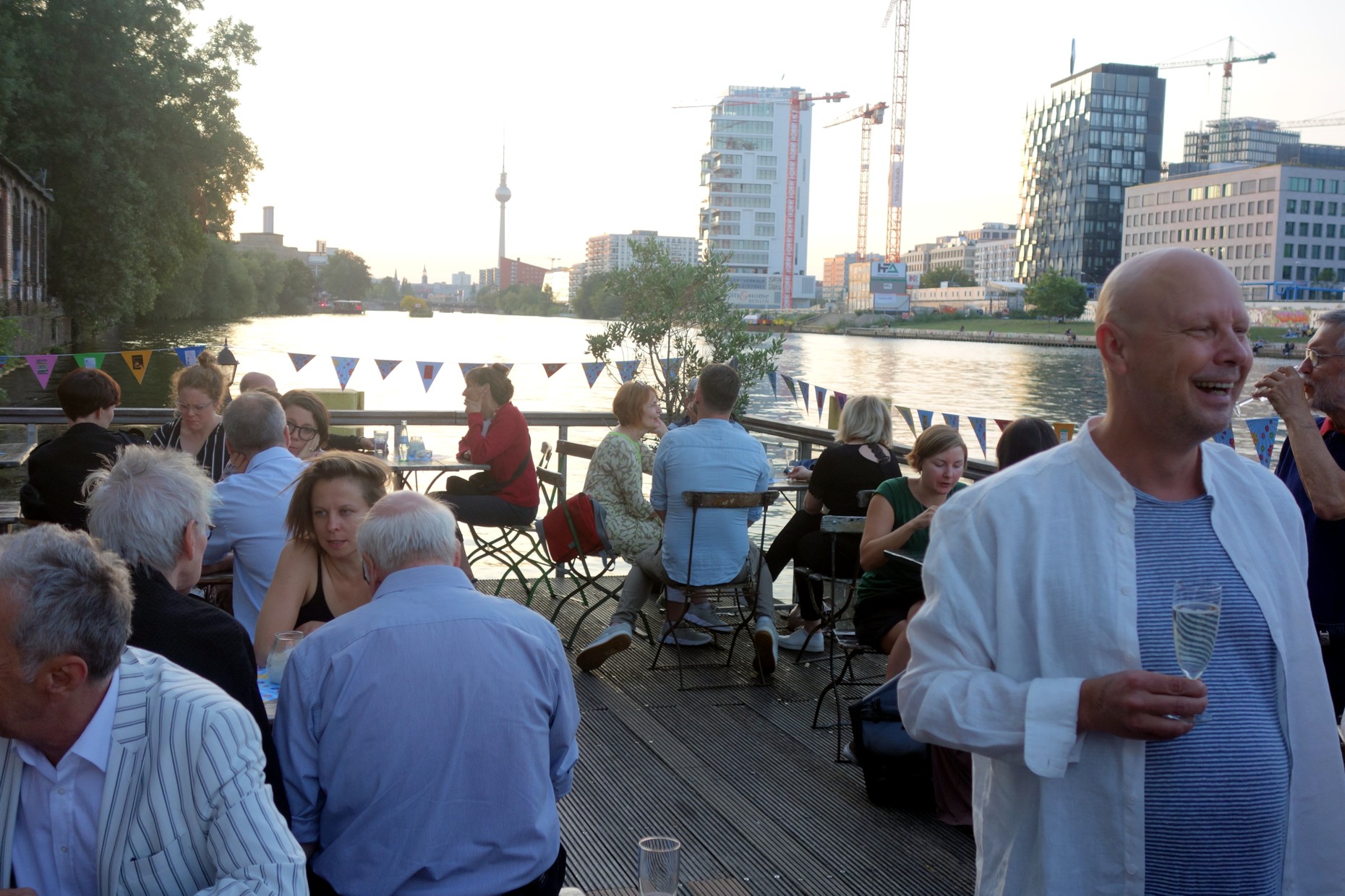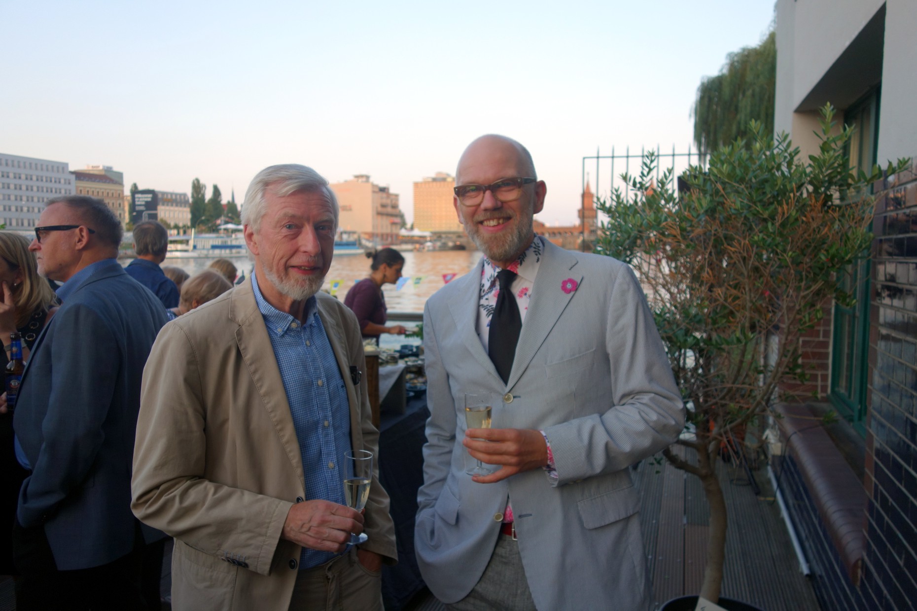 10 Jahre Galiani Berlin. Das Ereignis wurde gestern Abend im Fluxbau in Kreuzberg gefeiert. Die Oberbaumbrücke und das gegenüberliegende Spreeufer boten eine schöne Kulisse für das Fest mit mehr als 200 Gästen, darunter Autoren, Buchhändler und Journalisten. Auch zahlreiche Mitarbeiter des Mutterhauses Kiepenheuer & Witsch warem zum Gratulieren angereist.