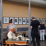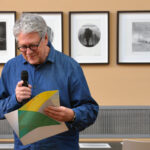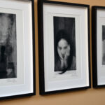 Heute Nachmittag wurde eine kleine, feine Ausstellung mit Bildern der Illustratorin Ulrike Möltgen im Heine Haus in Düsseldorf eröffnet. Rudolf Müller, der mit Selinde Böhm die Müller & Böhm Literaturhandlung im Heine Haus betreibt, erinnerte sich in seiner Ansprache daran, wie Ulrike Möltgen eines Tages – damals noch im Ladenlokal in der Neustraße – vor ihm stand und ihm eine Arbeit zu Gertrude Stein anbot. Das Blatt in einer Hülle sei etwas sperrig gewesen, erzählte der Buchhändler, aber auch interessant. Wenn er 50 Stück abnehme, habe sie eine Wette gewonnen, habe die Studentin von Wolf Erlbruch damals erklärt. Und dann habe er eben 50 Stück genommen.