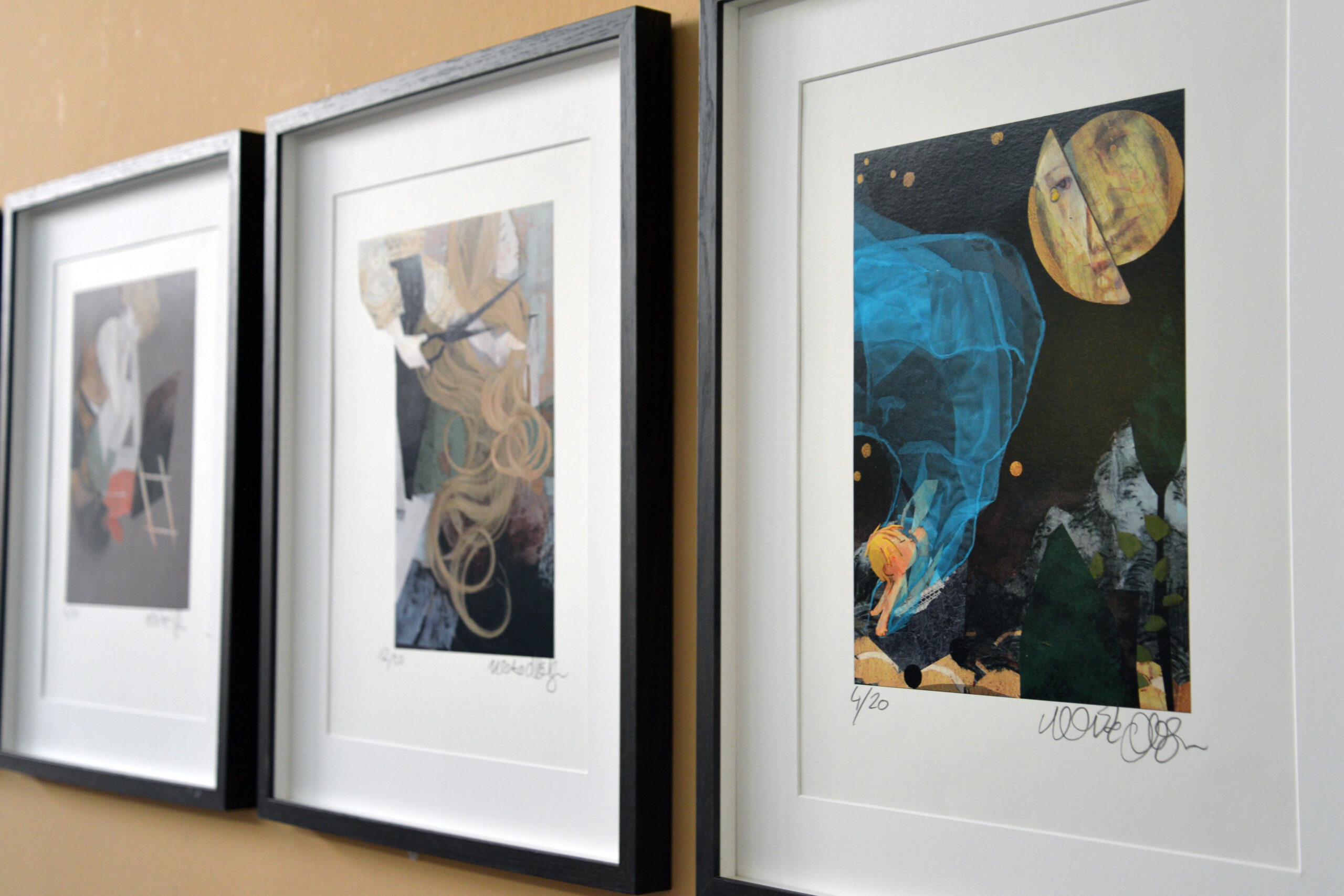 Ihr Werk habe er seither im Auge behalten – und stets in der Buchhandlung präsentiert. Inzwischen hat Ulrike Möltgen zahlreiche Bücher illustriert und Auszeichnungen erhalten. In Düsseldorf sind Drucke aus den drei Insel-Bücherei-Bänden Der kleine Häwelmann, Das Geschenk der Weisen und Kleider machen Leute sowie aus dem frisch erschienenen Jugendbuch Der Vogelschorsch (Jacoby & Stuart, Text: Hannes Wirlinger) noch bis zum 28. September zu sehen – und in einer limitierten Auflage zu erwerben.