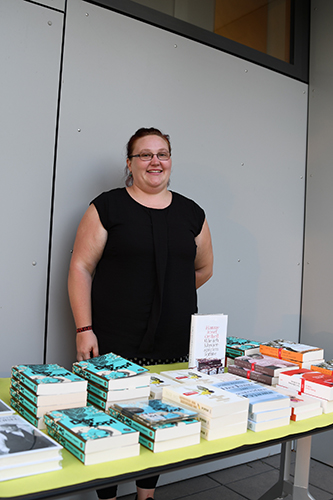Das Stück Abschied von Blue Mango beendete den Abend. Anna Doepfner, Buchhändlerin von Bergen erlesen, vor wenigen Wochen mit dem Deutschen Buchhandlungspreis geehrt, hatte einen Büchertisch aufgebaut und alle Werke vorrätig. Uwe Hahner dankte den jungen Technikern Paul Hruschka und Rouven Malinowski, der Organisatorin Gaby Barth und ihrem Team. Viele engagierten sich, um diese kooperative Veranstaltung, deren Besuch kostenfrei war, auf die Beine zu stellen.