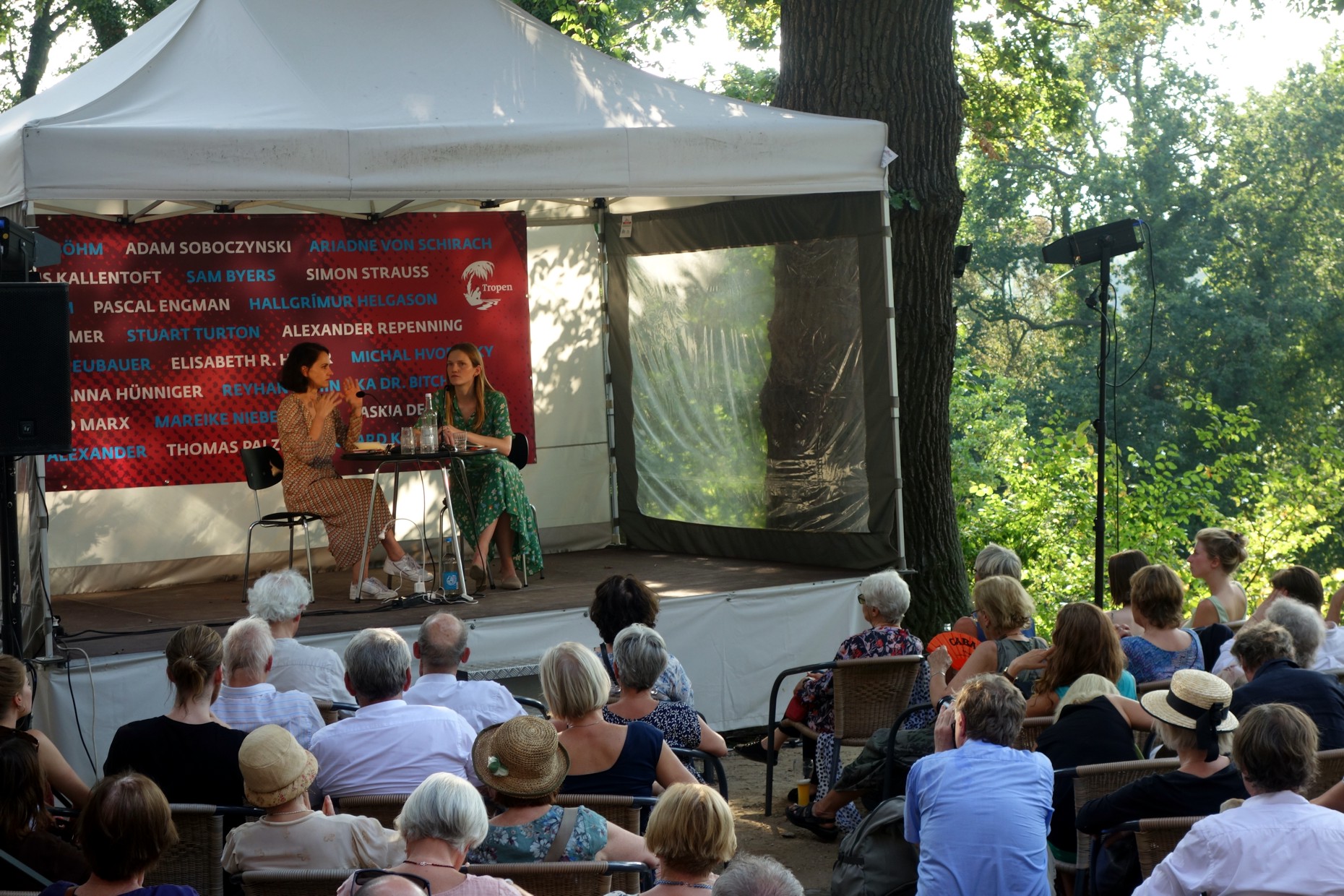 „Tout Berlin trifft sich heute am Wannsee“, brachte ein Besucher die Stimmung auf den Punkt. Unter den Gästen waren Autoren, Übersetzer, Lektoren. zahlreiche Buchhändler und andere Literaturfreunde. Im Halbstundentakt lasen Autorinnen und Autoren auf der Terrasse der Villa und an der Rotunde am See und gaben Einblick in die Vielseitig des Tropen-Programms. Zum Auftakt machte Ariadne von Schirach neugierig auf ihr neues Buch Die psychotische Gesellschaft. Wie wir Angst und Ohnmacht überwinden. Hochaktuell war auch die Lesung von Sam Byers, der seinen Roman Schönes Neues England präsentierte, in dem er das Bild einer Gesellschaft nach dem Brexit zeichnet. Die Journalistin und Aktivistin Mareike Nieberding sprach mit der Journalistin Andrea Hanna Hünniger über ihren politischen Aufruf Verwende deine Jugend, in dem sie zeigt, wie man sich einmischen kann.