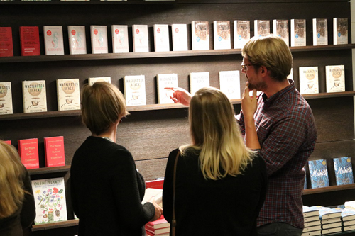 Dominique Pleimling erläuterte das Vorhaben, den Eichborn Verlag wieder stärker ins Bewusstsein des Buchhandels zu rücken und unterstrich noch einmal die Bedeutung der Buchhandlungen für die Arbeit des Verlags. Bei Getränken und Fingerfood entwickelten sich lebhafte Gespräche über Bücher, Literatur, Vermarktungsfragen und alles darum herum.