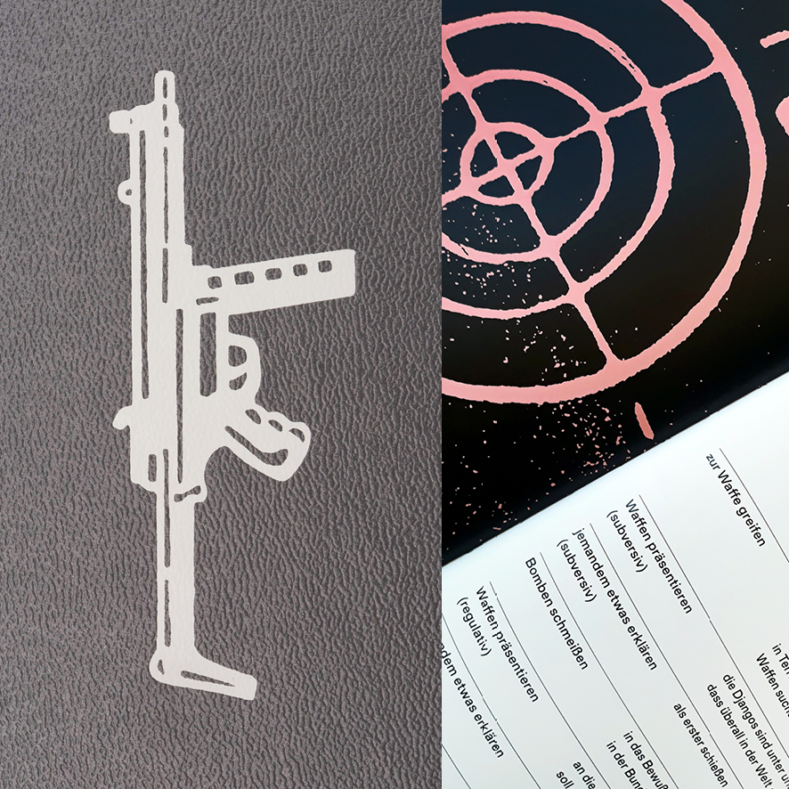 Entstanden ist es aus der 2017 vorgelegten Diplomarbeit der drei Gestalter, die gemeinsam mit ihrem Typografie-Professor Günter Karl Bose parallel eine Ausstellung zum Thema am Deutschen Buch- und Schriftmuseum in Leipzig kuratierten. Das Buch stellt die Frage nach der programmatischen Bedeutung des Emblems der Roten Armee Fraktion und dessen Elementen „Name“, „Waffe“, „Stern“.