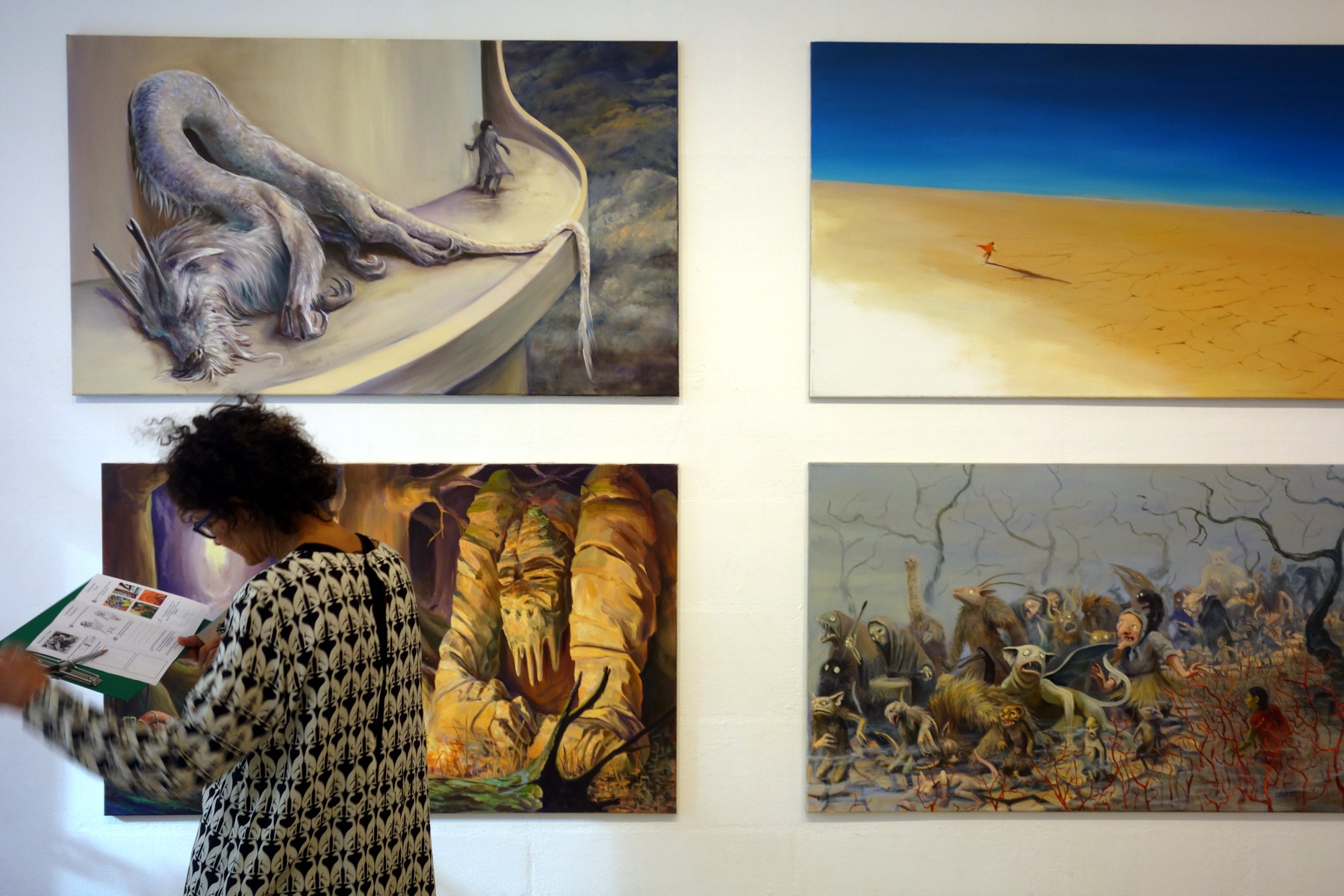 Im November wäre Michael Ende 90 Jahre alt geworden, und sein Roman Die unendliche Geschichte feiert in diesem Jahr seinen 40. Geburtstag. Aus diesen Anlässen ist jetzt die illustrierte Jubiläumsausgabe des Buches im Thienemann Verlag erschienen. Der Berliner Künstler Sebastian Meschenmoser schuf dafür 50 großformatige Ölbilder und mehr als 100 Bleistiftzeichnungen. LesArt zeigt die Gemälde sowie eine Auswahl von Meschenmosers Zeichnungen und Skizzen. Darüber hinaus präsentiert die Ausstellung die Originalzeichungen (Aquarell und Buntstift) von Roswitha Quadflieg für die Erstausgabe von Die unendliche Geschichte aus dem Jahr 1979 – eine Leihgabe des Troisdorfer Bilderbuchmuseums Burg Wissem. Außerdem sind sämtliche Buchausgaben der Übersetzungen von „Die unendliche Geschichte sowie Originalbriefe von Michael Ende ausgestellt.