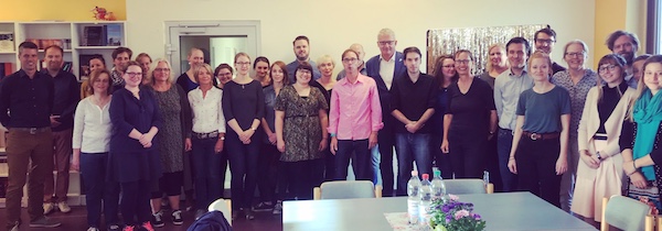 Dass die wbg im Rahmen des ersten Deutschen Verlagspreises (neben Reclam und Schwaneberger) mit einem Gütesiegel ausgezeichnet wird, war Anlass für das wbg-Team zusammenzukommen und die schöne Nachricht gemeinsam zu feiern. Wie das Foto zeigt, geht das sichtlich auch mit Mineralwasser – aber Pressefrau Kristin Voigtländer klärt auf: