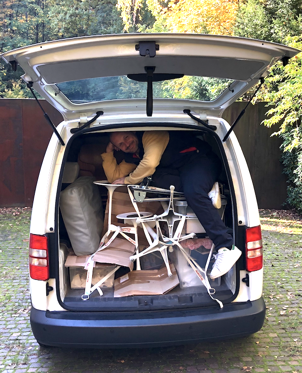 Das Foto zeigt ihn vor der Abfahrt: Er passte gerade noch ins Auto und ist jetzt in Frankfurt angekommen. Was auch heißt: Wenn wir am BuchMarkt-Stand morgen mit unseren Freunden, die mit dem Aufbau schon fertig sind, um 17 Uhr die Messe für uns in Halle 4.1 einläuten – dann wird Daniel Kampa und sein Team ungewollt seine Erfolsgswoche mit uns feiern müssen.