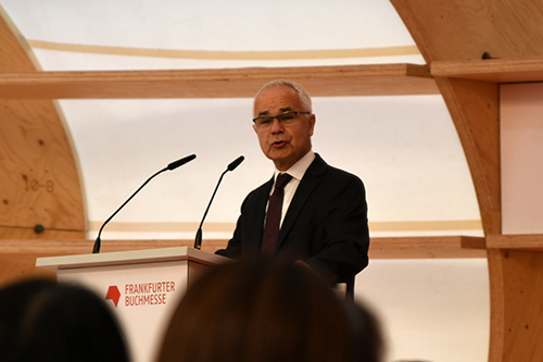 Es gehe in der Buchbranche künftig verstärkt um Inhalte, Innovationen und Nachhaltigkeit. „Die GAFA-Konzerne geben das Tempo vor. Aber gerade diese gigantischen Unternehmen rechtfertigen die Buchmesse, in der es um die Auseinandersetzung mit den gegenwärtig herrschenden globalen Kräften geht.“ Das Beispiel Edward Snowden zeige, dass auch einzelne Menschen viel bewirken können.