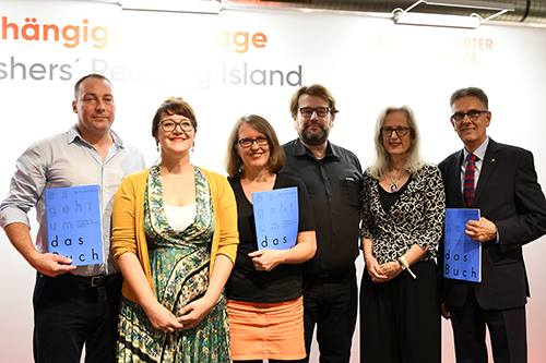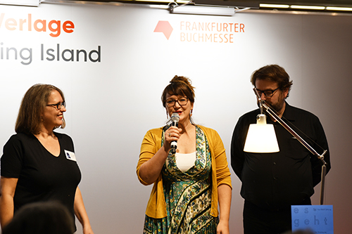 „In 31.000 Exemplaren werden die Unabhängigen sichtbar“, betonte Britta Jürgs. Mit ihren Vorstandskollegen Leif Greinus und Jörg Sundermeier stellte sie den Katalog Es geht um das Buch auf der Leseinsel der unabhängigen Verlage auf der Frankfurter Buchmesse vor.