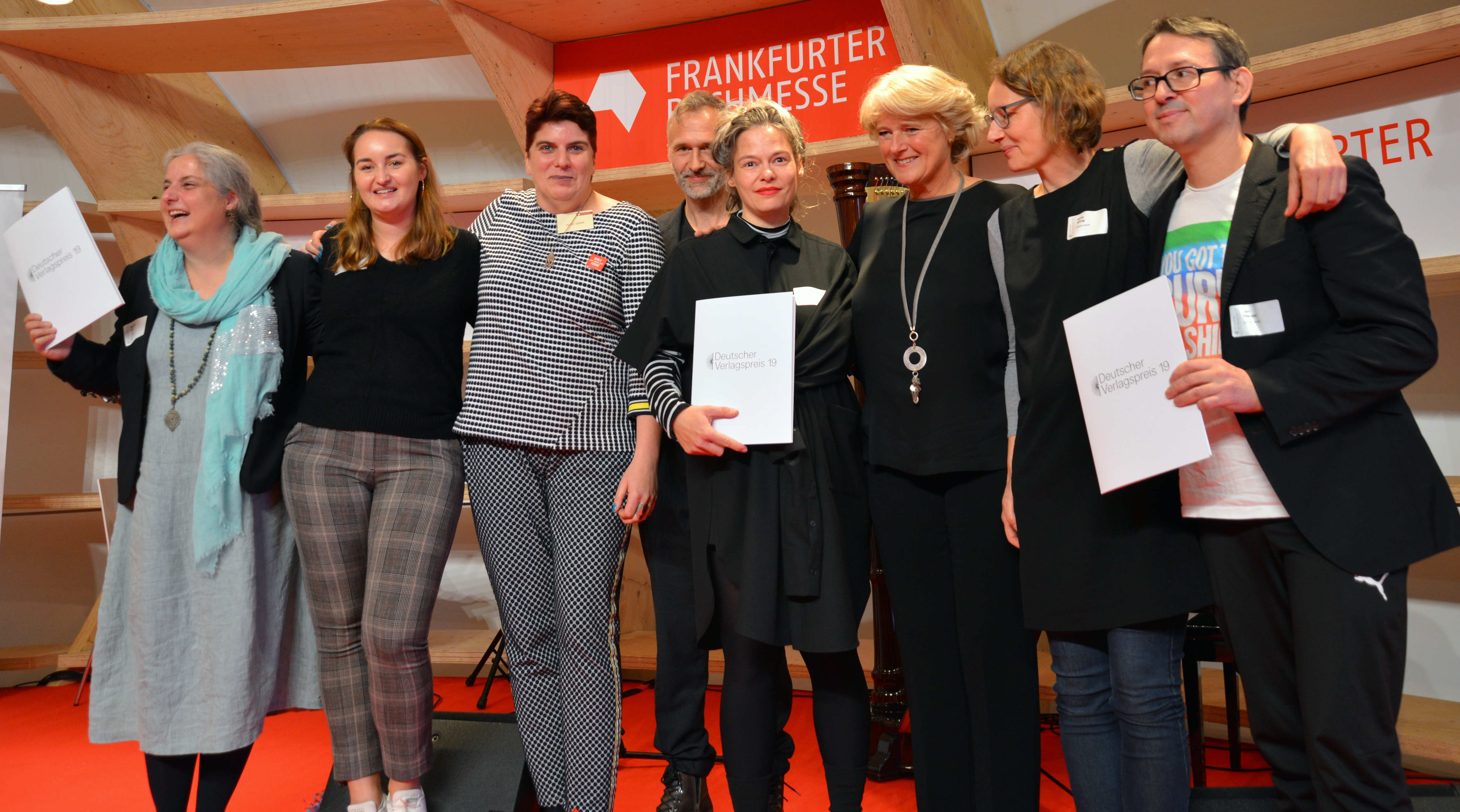 60 Verlage erhielten jeweils 15.000 Euro für ihre herausragende verlegerische Arbeit. Mit undotierten Anerkennungen wurden die Wissenschaftliche Buchgesellschaft, der Verlag Schwaneberger, die Edition Michael Fischer und der Reclam Verlag geehrt. Sie zeigten „auf erstaunliche Weise, wie sich Tradition und Zukunftsfähigkeit verbinden lassen und wie die dafür nötigen Transformationsprozesse gelingen können“, so die Jury.
