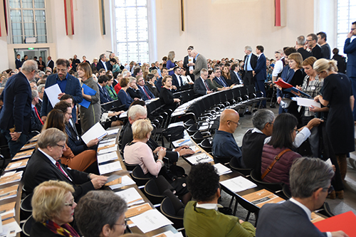 Frankfurts Oberbürgermeister Peter Feldmann begrüßte die rund 700 geladenen Gäste am gestrigen Vormittag zur Verleihung des Friedenspreises des Deutschen Buchhandels traditionell in der Paulskirche, „dem richtigen Ort für so eine Veranstaltung“. Deutlich grenzte sich Feldmann von antidemokratischen, antisemitischen und ausländerfeindlichen Äußerungen ab, denen man bei aller Toleranz konsequent Haltung entgegensetzen müsse.