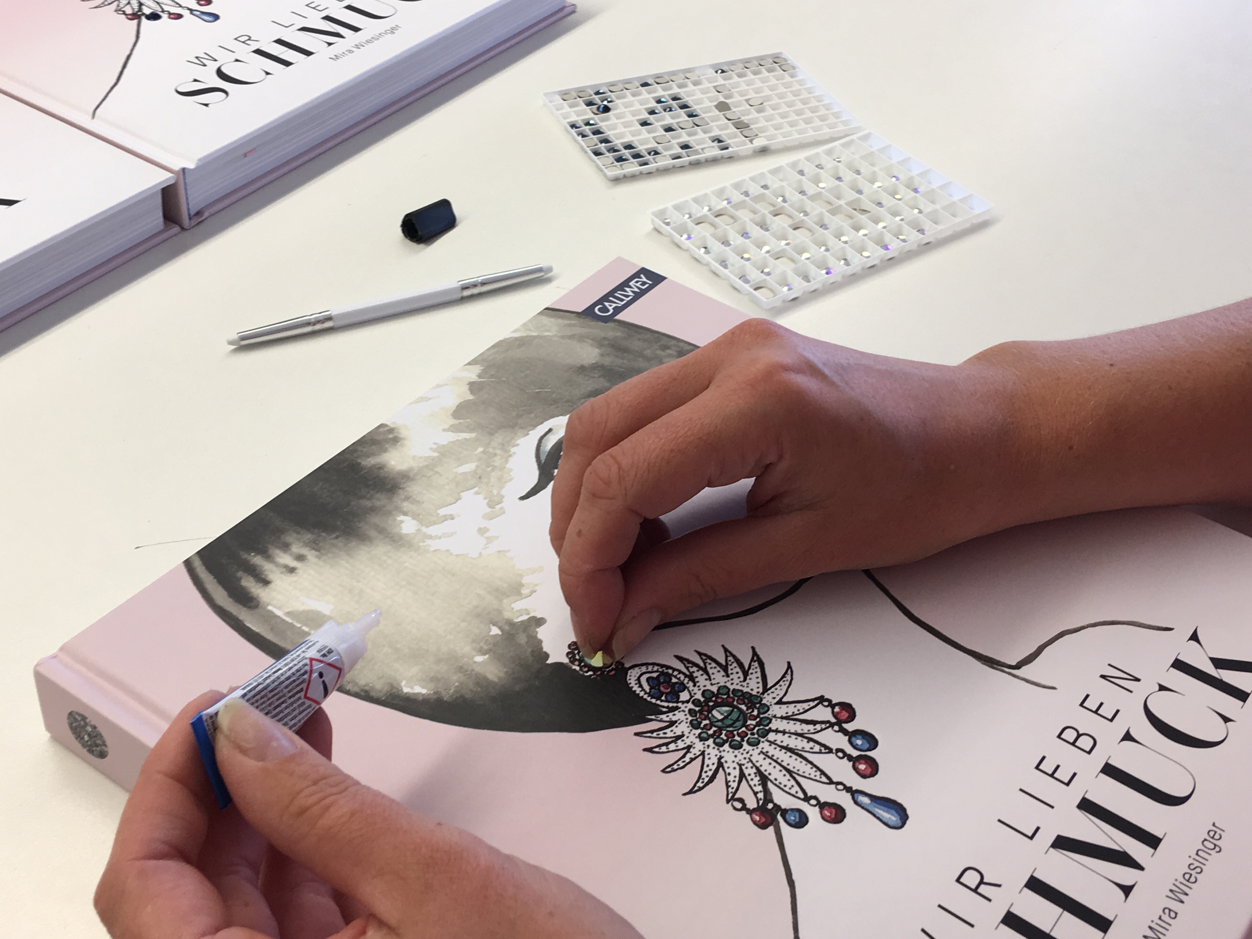 „Für die Herbst-Novität Wir lieben Schmuck haben wir das Cover mit vier Edelsteinen von Swarowski beklebt (kein Sponsoring!). Zum Schutz der Bücher und Steine bei Lagerung und Transport haben wir extra einen Deckel produziert, in dem für die vier Steine Löcher ausgestanzt sind“, schwärmt Andreas Hagenkord, Leiter Presse und Information.