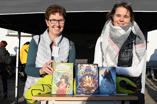Die Buchhandlung Bücher im Bogen, die zum zweiten Mal auf der Kalbacher Kinderbuchmesse ihren Stand aufgeschlagen hatte und auch für die ausgestellten Bücher sorgte, bot die Spitzentitel und viele weitere Bücher für Kinder an.