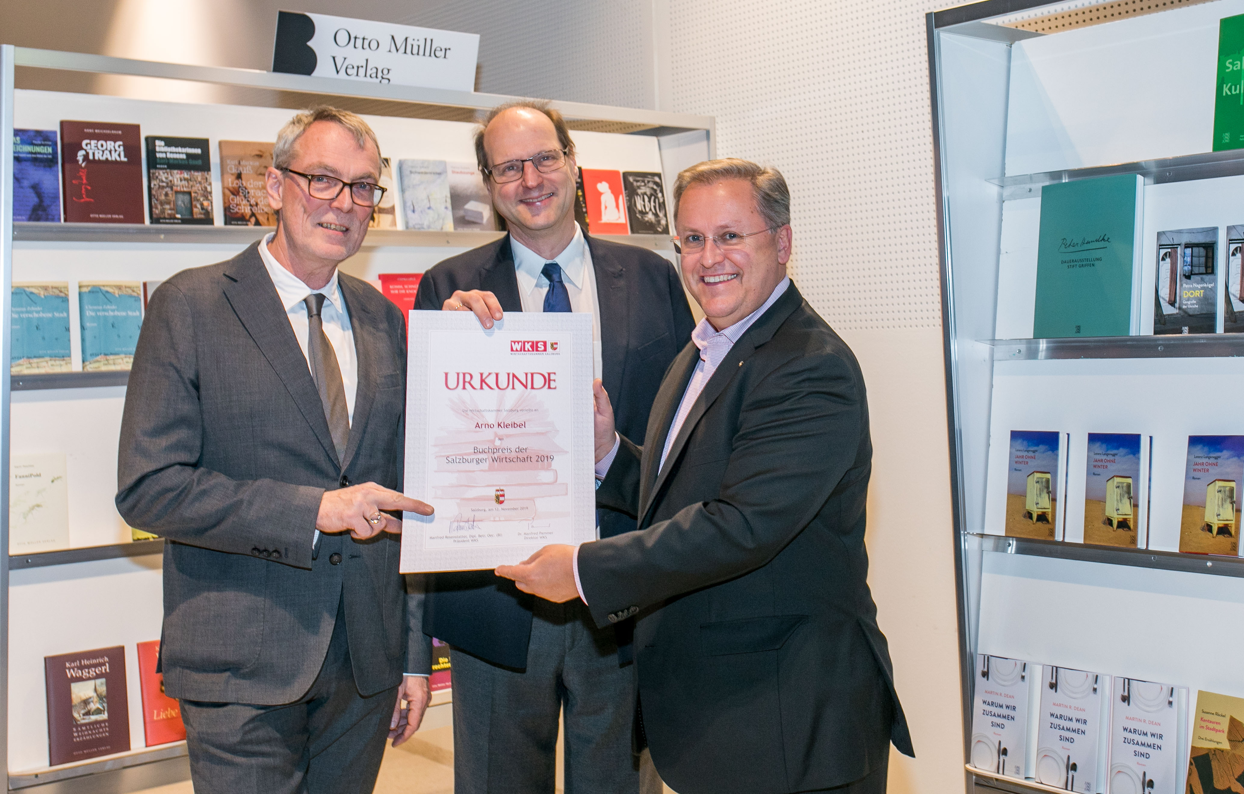 Für seine „besonderen verlegerischen Initiativen“ (aus der Jury-Begründung) erhält der Verleger des Otto Müller Verlages, Arno Kleibel, den mit  7.000 Euro dotierten Buchpreis der Salzburger Wirtschaft 2019.