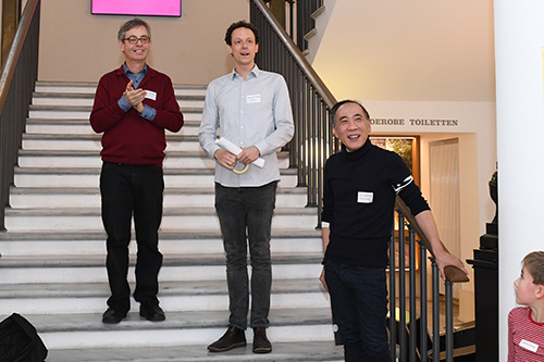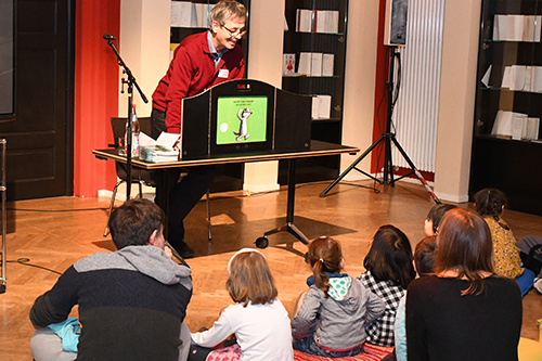 Benno Hennig von Lange, verantwortlich für das junge Literaturhaus, begrüßte die Gäste im Portikus in Frankfurt. „Der Moritz Verlag macht Kinderbücher, die nicht nur Kinder begeistern“, betonte er. Markus Weber bedankte sich für die Zusage des Literaturhauses mit seinen schönen Räumen zum Feiern. Er verwies auf das Programm: Von 14 Uhr bis 18 Uhr waren Lesungen, Workshops sowie Signierstunden mit Chen Jianghong und Thé Tjong-Khing geplant. Bei einem Quiz konnten die Kinder Bücher aus dem Moritz Verlag gewinnen. Die Buchhandlung Eselsohr bot außerdem Bücher zum Kaufen an.