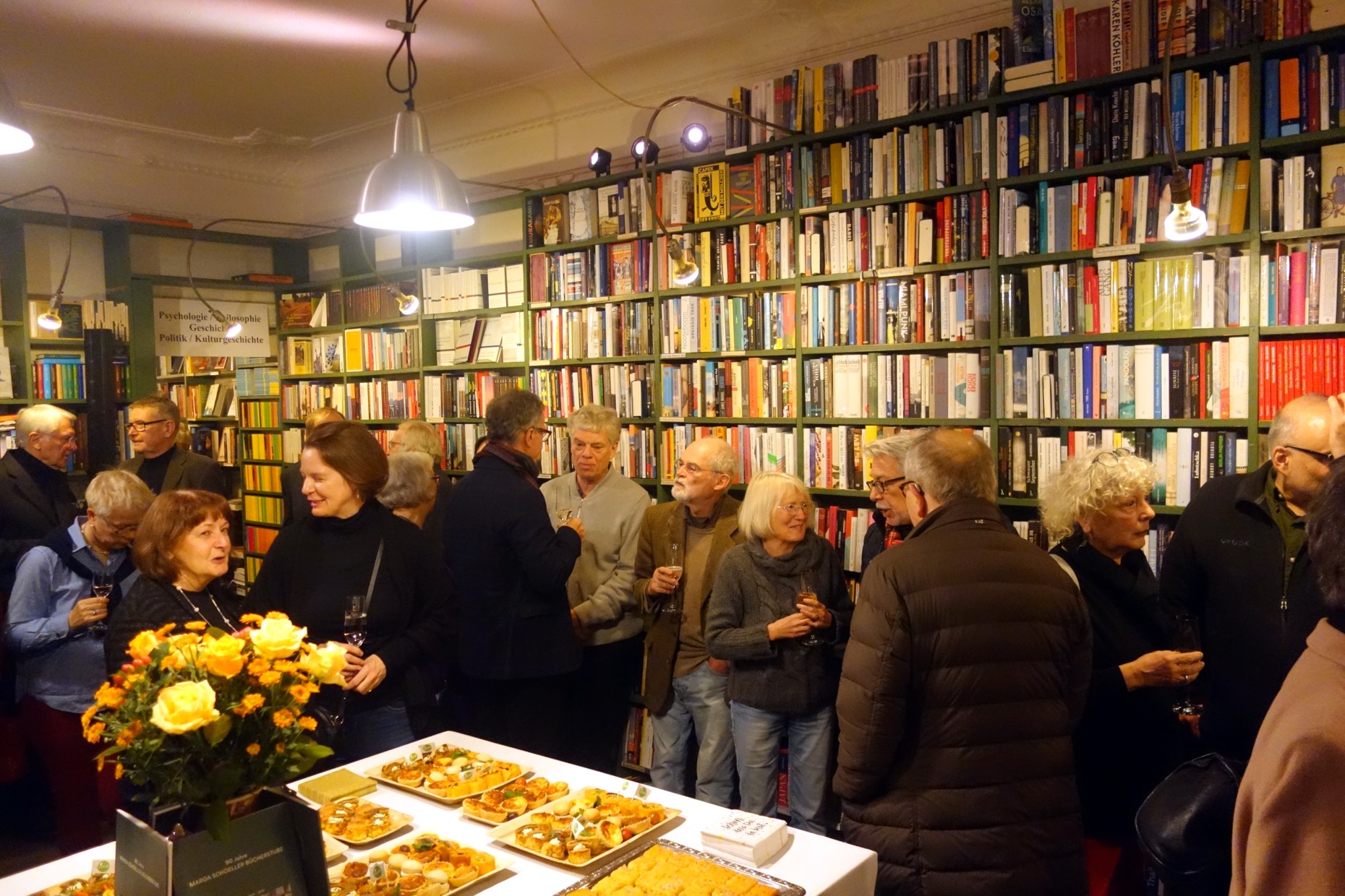 „Die hätten die ganze Straße mieten sollen“, scherzte ein Gast, als er sich durch das auf dem Bürgersteig aufgebaute Partyzelt einen Weg ins Innere der Buchhandlung bahnte. Mehr als 250 Gäste, darunter Stammkunden, Kollegen, Verleger, Vertreter und Freunde, waren gekommen um auf das 90-jährige Jubiläum der Marga Schoeller Bücherstube anzustoßen.