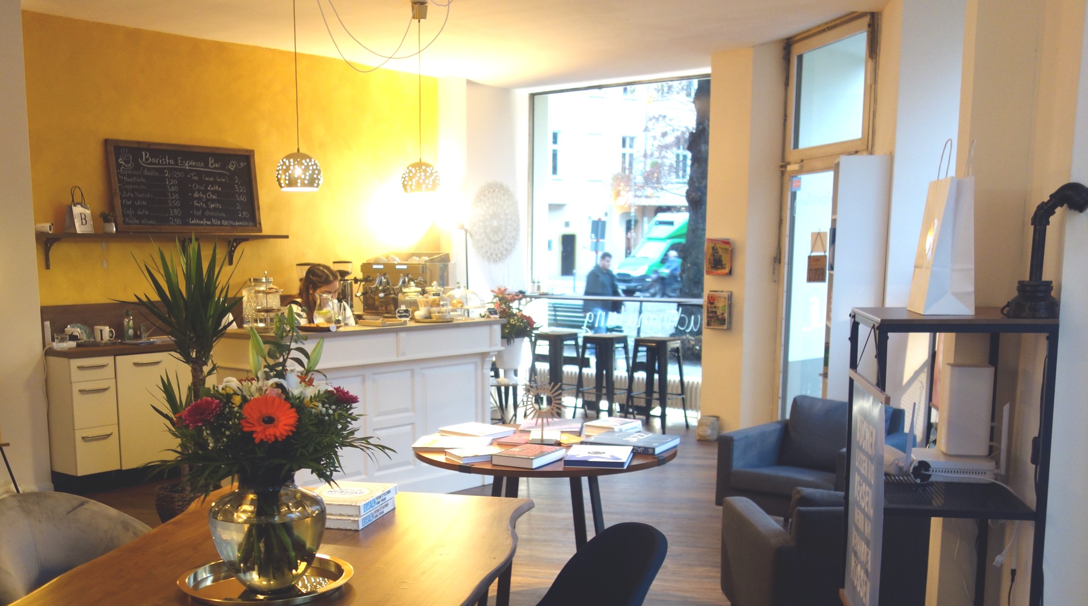 Damit die Wohlfühlatmosphäre gelingt, ist im Eingangsbereich auf etwa einem Drittel der Fläche ein Barista Café mit einigen Barhockern im Schaufenster integriert. „Die Kunden können es sich beim Stöbern mit einem Kaffee im ganzen Laden gemütlich machen“, so die Gründerin. Im Sortiment, das sie zunächst nach eigenen Vorlieben zusammenstellte, schlägt sich ihr Faible für französische Literatur deutlich nieder. Künftig sollen zudem noch englische und französische Originalausgaben hinzukommen. Überhaupt wächst das Sortiment ständig und Lesungen sind ab Dezember auch geplant.