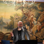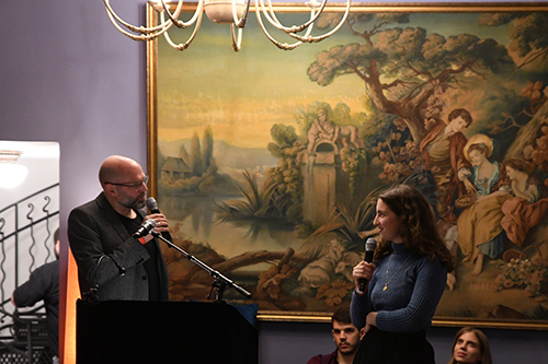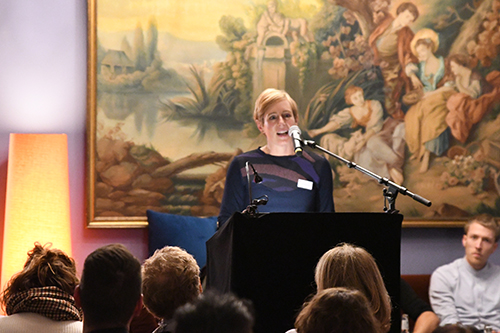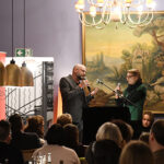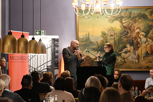 Sandra Poppe, Projektleiterin der Crespo Foundation – die Stiftung initiierte 2018 den Wortmeldungen Literaturpreis für kritische Kurztexte – begrüßte die Gäste im voll besetzten Salon. Sie erinnerte an die vor wenigen Wochen verstorbene Gründerin der Stiftung Ulrike Crespo.