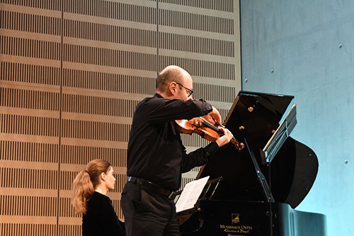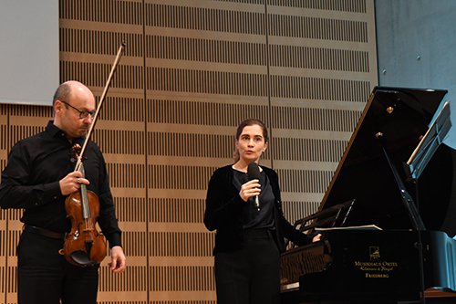 Henrike Brüggen am Flügel und Laurent Weibel an der Violine leiteten den Abend mit Impressions d’enfance des rumänischen Komponisten George Enescu ein.