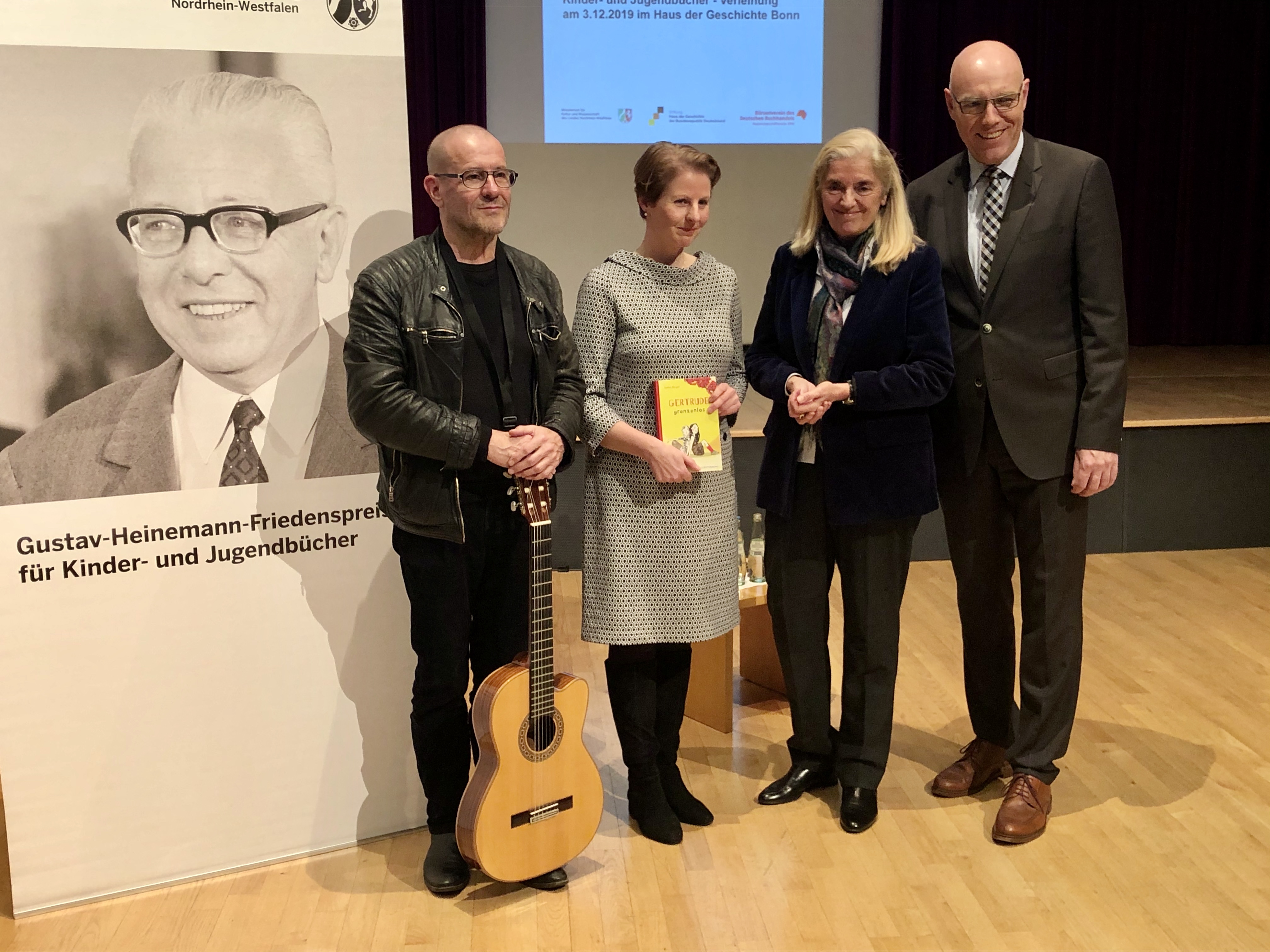 Judith Burger wurde am vergangenen Dienstag im Bonner Haus der Geschichte mit dem Gustav-Heinemann-Friedenspreis für ihren Kinderroman Gertrude grenzenlos (Gerstenberg) ausgezeichnet. Musikalisch begleitete Stephan Krawczyk die Veranstaltung. In ihrer Laudatio sagte Isabell Pfeiffer-Poensgen, Ministerin für Kultur und Wissenschaft des Landes Nordrhein-Westfalen: „30 Jahre nach dem Fall der Mauer schreibt Judith Burger mit ihrem Buch auch gegen das Vergessen deutscher Geschichte an. Sie zeigt, was es bedeutet, in einem System mit staatlichen Repressalien leben zu müssen und wie zwei miteinander befreundete junge Mädchen sich tapfer dagegenstellen.“