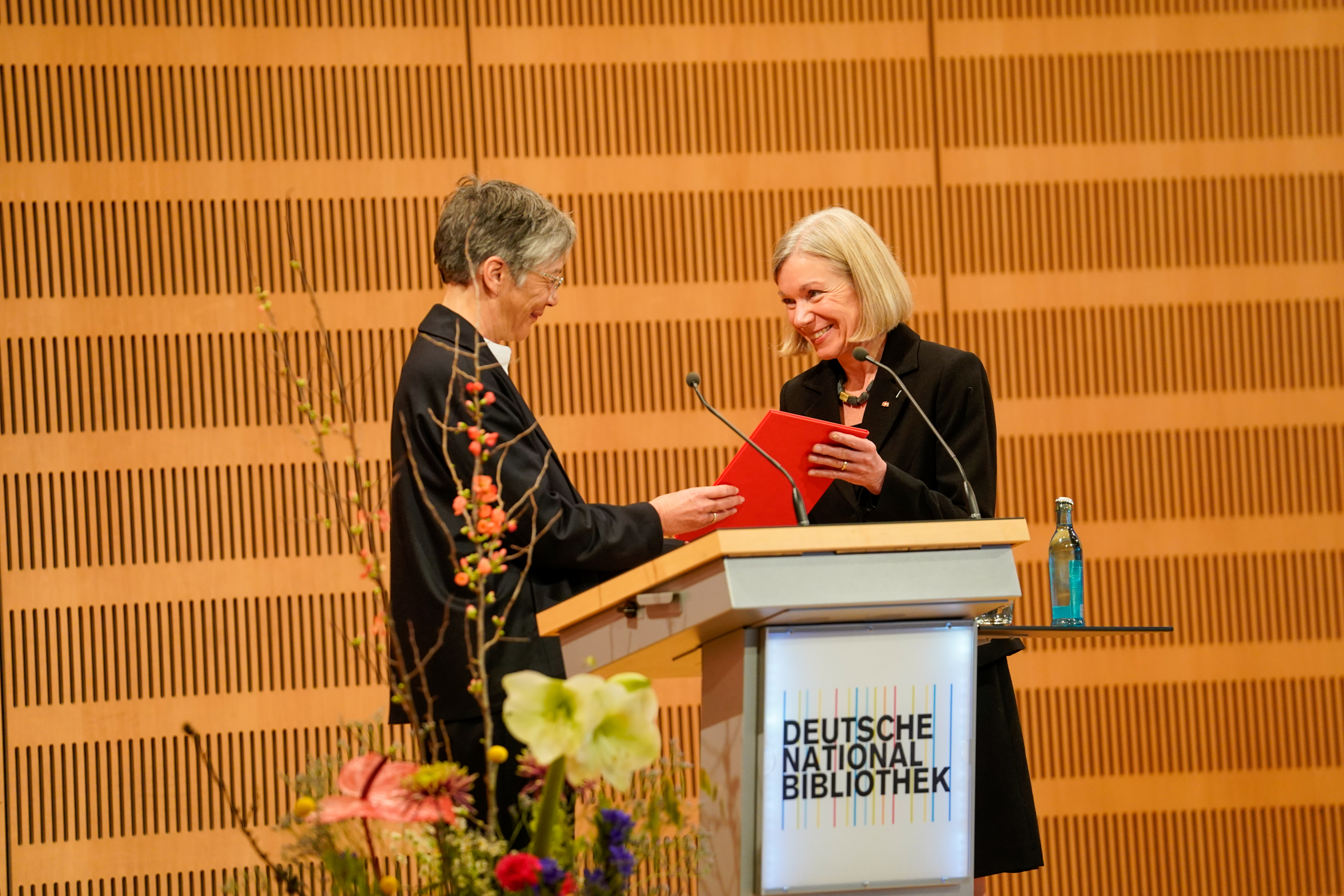 „Elisabeth Niggemann hat den Wandel der Deutschen Nationalbibliothek ins digitale Zeitalter sorgsam, gewissenhaft und als Mittlerin zwischen Autorinnen und Autoren, Verlagen, Bibliotheken und Verwertungsgesellschaften gestaltet – die Umsetzung der Digitalisierung verwaister und vergriffener Werke ist ein Beispiel hierfür. Trotz aller Zukunftsorientierung verlor sie das Buch als Kulturgut und die Bedeutung, die in seiner Materialität und Ästhetik liegt, nie aus den Augen“, sagte Karin Schmidt-Friderichs, Vorsteherin des Börsenvereins.