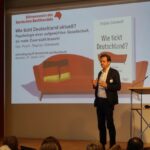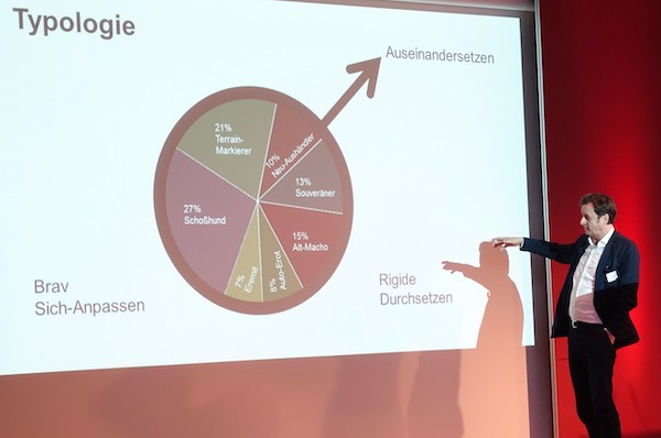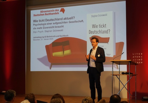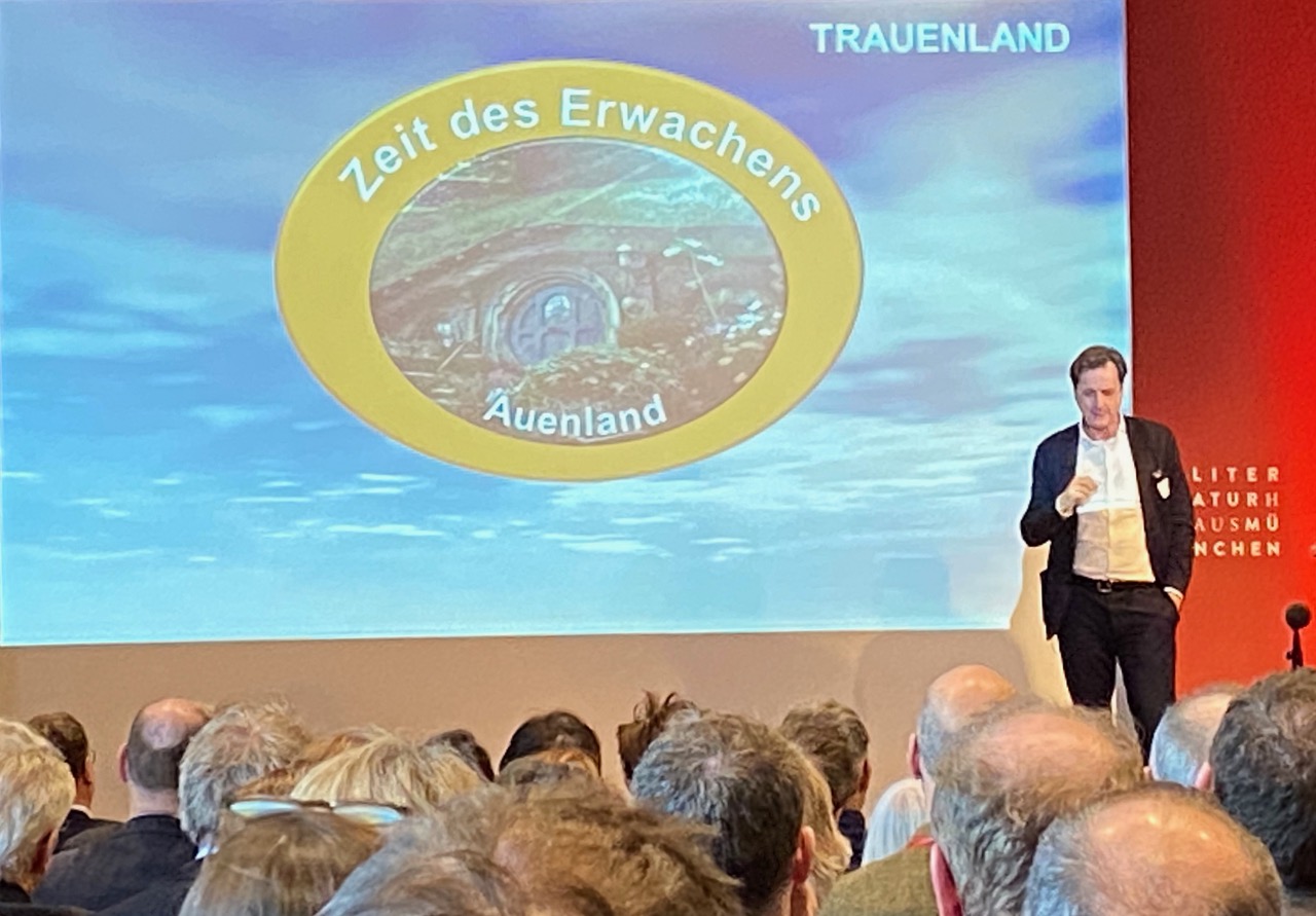 Der von einigen Bildern untermalte, frei mit rheinischem Zungenschlag gehaltene Vortrag des Psychologen Stephan Grünewald, Gründer des rheingold-Institutes, sorgte für eine erfrischende Mischung aus Heiterkeit und Nachdenklichkeit. Manchmal kommen wir uns in Deutschland so vor, als lebten wir in einem der letzten Paradiese, wie im Auenland. Das gibt uns Halt. Probleme sehen wir gern abgeschoben ins Grauenland. Wir empfinden keine Zukunftsfreude, sondern möchten uns am liebsten in der Gegenwart verbunkern. Bundeskanzlerin Merkel war lange Zeit die oberste Sachwalterin dieser Mentalität. Alternativlos, die geschlossene Raute. MUT wurde durch das MUTTI-Prinzip ersetzt.