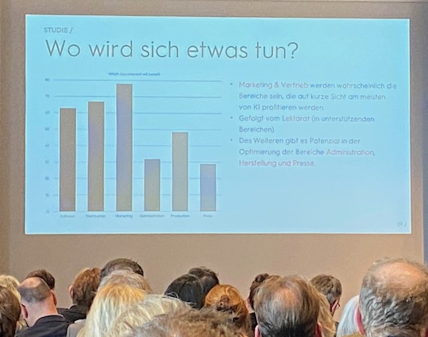 Was wird jetzt schon eingesetzt? Werbeanzeigen in automatisierter Form, personalisierte Vorschauen, Trend-Analysen etc. Ob Verlage sich tatschlich auf eine Nachfragevorhersage verlassen, um mit 39 Faktoren 28 Tage vor dem Erscheinungstermin die optimale Größe der Erstauflage festzulegen, erscheint doch fraglich.