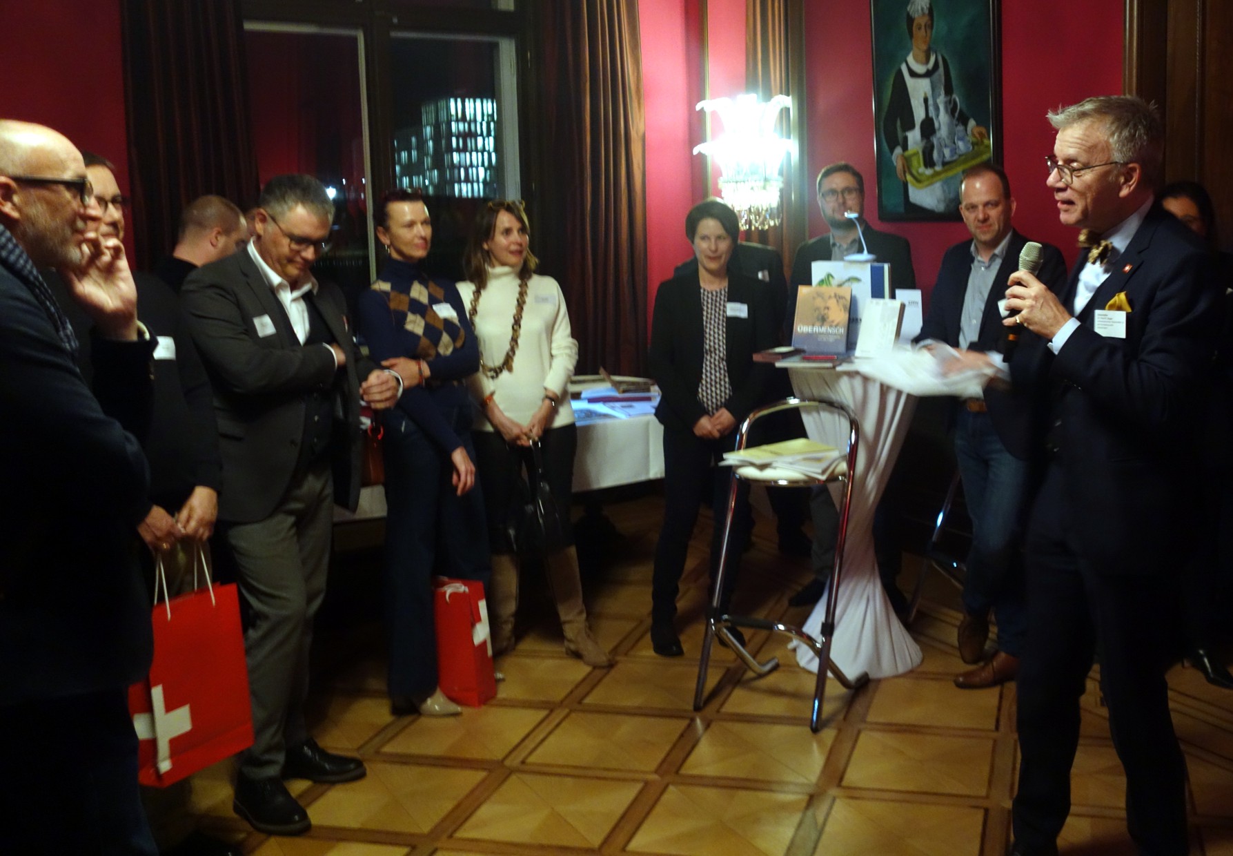 Daniel Waser, der zum ersten Mal in seiner Funktion als Geschäftsführer des SBVV dabei war, freute sich über die Gelegenheit, die Vielfalt der Schweizer Verlagsszene dem deutschen Publikum in lockerer Atmosphäre vorzustellen. Auch Botschafter Paul R. Seger mischte sich unter das Publikum und kam mit seinen Gästen ins Gespräch. „Das vergangene Jahr war ein erfolgreiches Schweizer Literaturjahr“, sagte er in seiner Begrüßung und erwähnte die Auszeichnungen für Lukas Bärfuss (Georg-Büchner-Preis), Ilma Rakusa (Heinrich-von-Kleist-Preis ) und Sybille Berg (Grand Prix Literatur, Bertolt-Brecht-Preis). Den Jackpot habe der junge Schweizer Kampa Verlag mit Nobelpreisträgerin Olga Tokarczuk geholt.