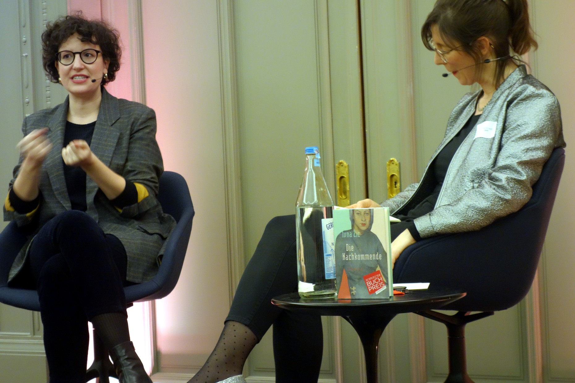 Am Abend wurden die Gespräch bei einem Apéro Riche fortgesetzt und wer wollte, konnte danach noch im Kaminzimmer eine Lesung mit Autorin und Regisseurin Ivna Žic erleben, deren Romandebüt Die Nachkommende (Matthes & Seitz Berlin) 2019 für den Schweizer Buchpreis nominiert war.
