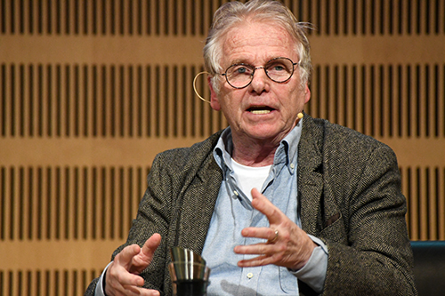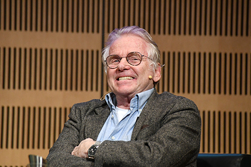 Christoph Schröder und Autor Daniel Cohn-Bendit stellten das gerade bei Kiepenheuer & Witsch erschienene Buch Unter den Stollen der Strand mit dem Untertitel Fußball und Politik – mein Leben vor.