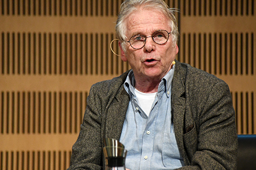 Christoph Schröder, Journalist, Autor und Fußballschiedsrichter und an diesem Abend Dialogpartner auf der Bühne, bemerkte vorab, dass der 1945 im französischen Montauban geborene Cohn-Bendit Kind einer jüdischen Familie ist, die 1933 vor den Nazis aus Deutschland nach Frankreich geflohen war. 1968 wurde er aufgrund der aktiven Beteiligung an den Studentenprotesten in Frankreich ausgewiesen und ließ sich in Frankfurt nieder. In dieser Stadt hat er viele Spuren hinterlassen. „Das nun vorliegende Buch verknüpft Autobiografie und Fußball“, urteilte Schröder und sprach die legendären Fußballspiele im Ostpark an. „Eigentlich haben wir im Günthersburgpark mit dem Kicken begonnen. Ich selbst war ein mittelmäßiger Spieler, aber beim Kopfball besser, als meine Größe ahnen lässt“, erklärte Cohn-Bendit. Außerdem erinnerte er an seine Urschreitherapie und an Joschka Fischer: „Er hatte die Ehre, mit mir Fußball zu spielen.“