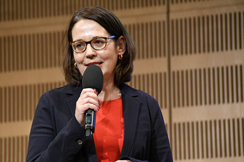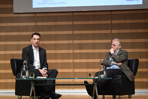 Am Mittwoch, 26. Februar, fanden in der Deutschen Nationalbibliothek gleich mehrere Premieren statt: Der seit Januar amtierende neue Generaldirektor der beiden Häuser in Leipzig und Frankfurt Frank Scholze begrüßte die Gäste der ausgebuchten Veranstaltung. Die Reihe Frankfurter Premieren des Kulturamts der Stadt hatte erstmals in die Nationalbibliothek eingeladen, weil die sonst üblichen Veranstaltungsorte nicht ausreichend Platz boten.