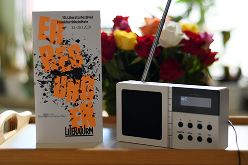 Das Jubiläums-Festival – es wäre der zehnte literaTurm gewesen – soll nun in ähnlicher Form im Frühjahr 2021 stattfinden. „Vielleicht dann als Erregungen2“, wie Festivalleiterin Sonja Vandenrath gerade im Gespräch mit Alf Mentzer von hr2-kultur sagte. Heute Abend hätte sie den Veranstaltungsreigen eigentlich in der Deutschen Nationalbibliothek in Frankfurt mit eröffnet.