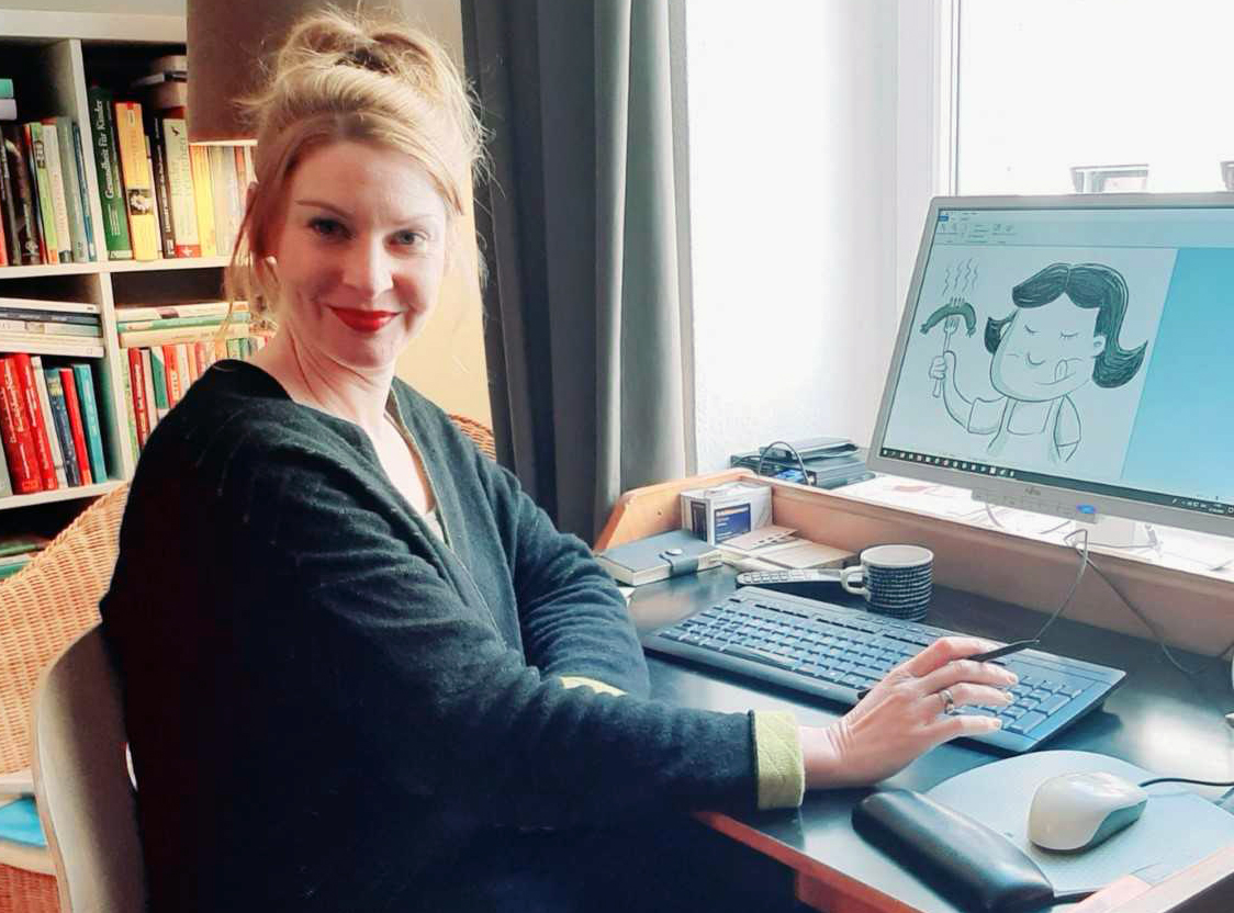 Kathy Heyer, Programmleitung Coppenrath (Danke an den Sohn fürs Foto aus dem Home-Office!):