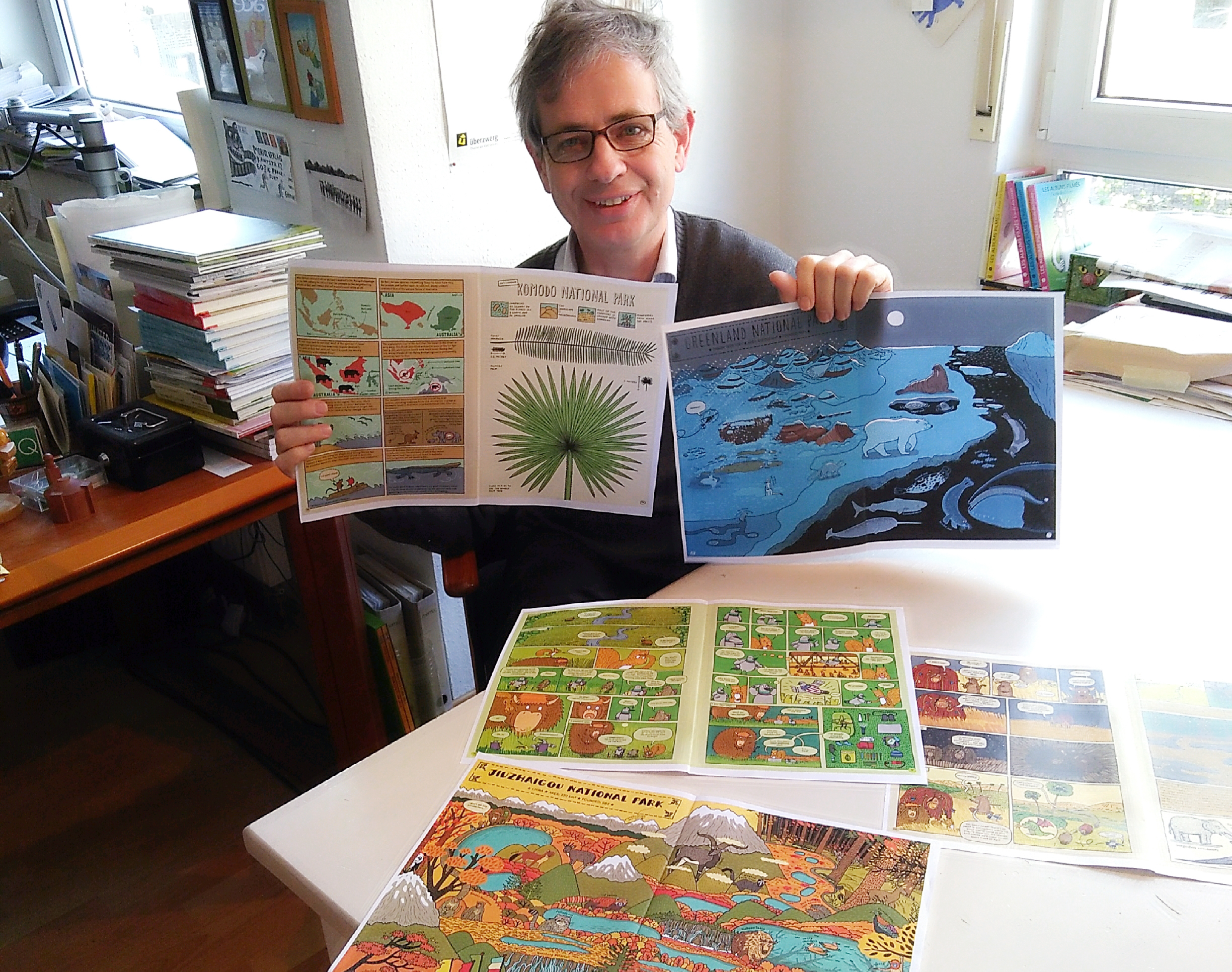 Markus Weber, Verleger Moritz Verlag: „Herzensbücher sind sie alle, aber ein Titel ist darunter, das das Zeug hat, zum Herzensbuch des Sortiments zu werden, stammt er doch von Aleksandra & Daniel Mizielinscy, auf deren neue Projekte viele seit Alle Welt und Unter der Erde/Tief im Wasser ganz besonders gespannt sind. In Auf nach Yellowstone! stellt das Warschauer Grafikerpaar acht Nationalparks auf allen Kontinenten vor und verbindet sie durch eine Comic-Geschichte, deren Protagonisten ein Wisent und ein Eichhörnchen sind. Nationalparks sind zugleich Sehnsuchtsorte wie Schutzräume, sie faszinieren und sie lassen uns empören über den menschlichen Umgang mit der Natur. Ich glaube, dass dieses Buch von einer Jugend, die nicht nur fridays auf der Suche nach future ist, auch wegen seiner Machart ganz besonders gespannt aufgenommen wird.“