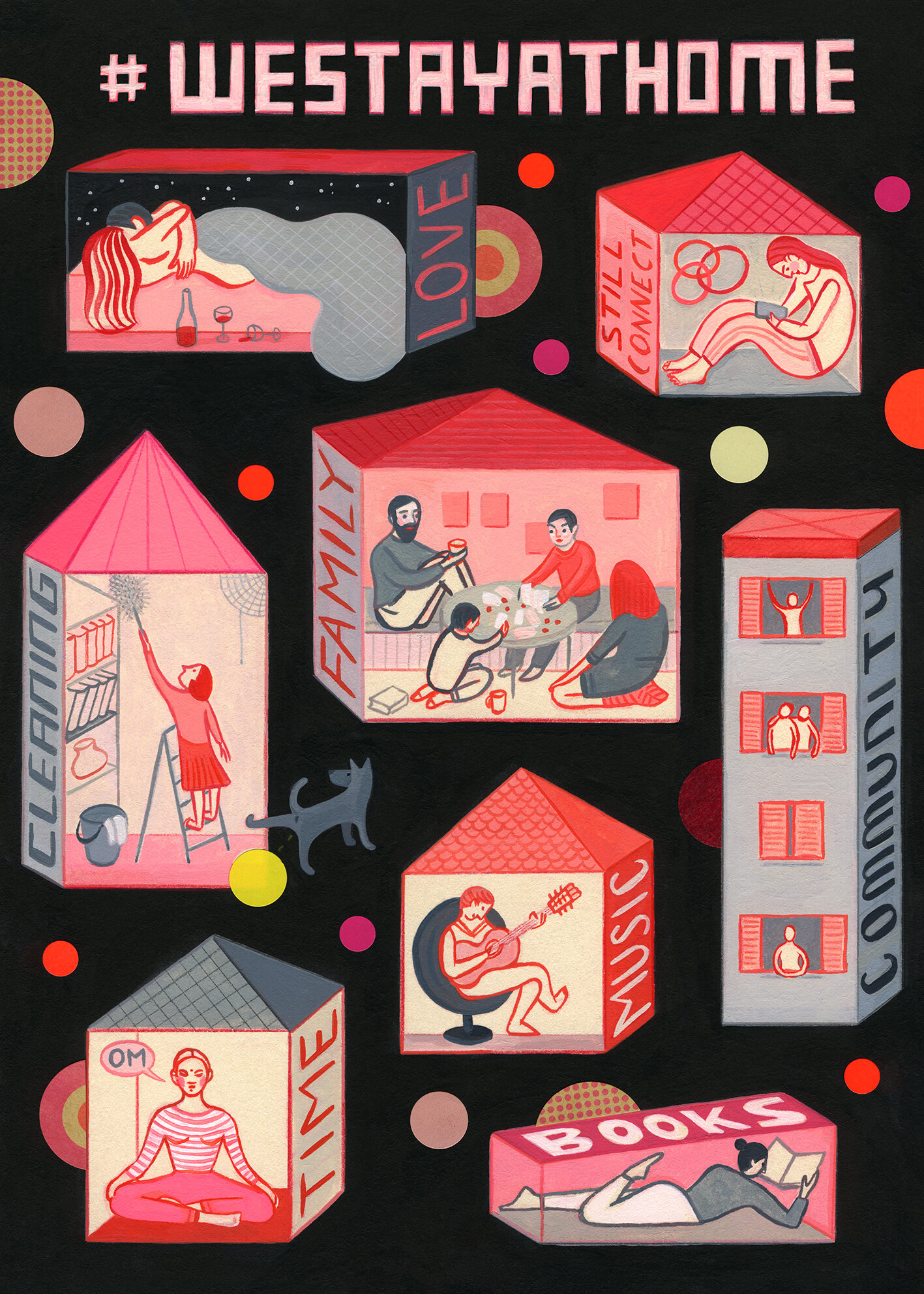 Ich habe das Glück als Zeichnerin im Rückzug produktiv sein zu können (vielleicht sogar eher besser als vorher…) und so ist der Entwurf für das Poster #WESTAYATHOME entstanden, welches ab sofort über meinen Webshop erhältlich ist. Für eure Wohnungstüren, Fenster, euren Nachbarn oder einfach als Support: POSTER #WESTAYATHOME, Format 50 x 70 cm, 22 Euro. Zu bestellen unter https://bertonasco.de/shop/we-stay-at-home