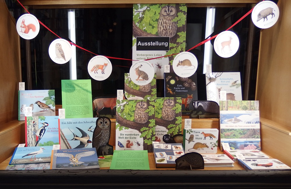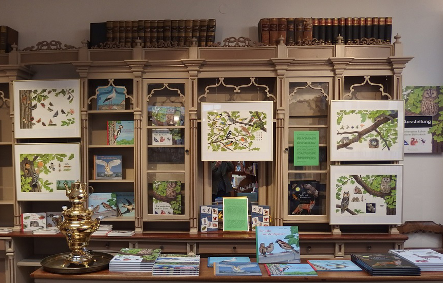 Punktlandung: Die Stader Buchhandlung Schaumburg begrüßte ihre Kunden zur Wiedereröffnung am 2. Mai mit der Ausstellung „Verborgenes Leben unterm Blätterdach“. Inhaberin Heide Koller-Duwe schwärmt: „Die wunderbaren Bilder mit den Naturmotiven von Thomas Müller tun den Menschen jetzt so gut!“ Die mit dem Gerstenberg Verlag geplante festliche Finissage konnten sich der Künstler, Gerstenberg-Geschäftsführerin Daniela Filthaut und die Buchhändlerin am 13. Juni mit Mundschutz und Abstandsregelung jedoch nur schwer vorstellen. Da war wie allerorten Flexibilität gefragt. Kurzerhand lädt die Buchhandlung mit Handzetteln, Newsletter und Presseunterstützung ihre Kunden zu einer besonderen Schaufensteraktion ein: Kinder und Erwachsene können Sammelstücke aus der Natur in den Laden bringen. Damit wird ein großes Schaufenster gestaltet, und alle Teilnehmer nehmen automatisch an einer Verlosung am 13. Juni teil. Zu den attraktiven Gewinnen gehören ein Originalbild und signierte Bücher von Thomas Müller.