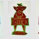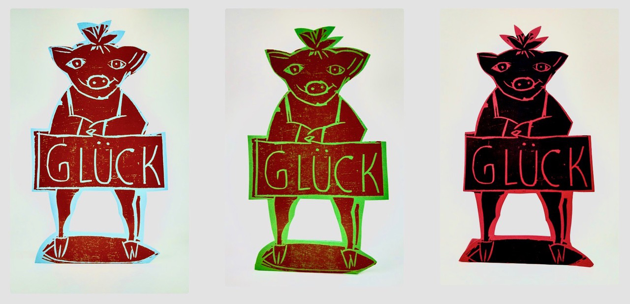 In der Reihe Schöner arbeiten im Home-Office bietet die Künstlerin verschiedene Drucke, eine Wundertüte und Glücksschweine an: