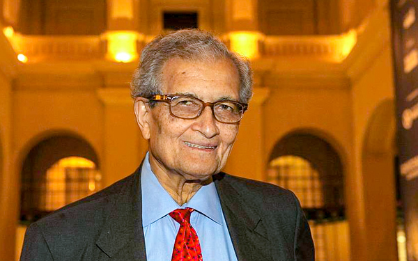 Nach einem Studium der Wirtschaftswissenschaften am Presidency College in Kalkutta, wurde er 1959 am Trinity College in Cambridge/England promoviert und widmete sich gleichzeitig dem Studium der Philosophie, was sich in einer Vielzahl seiner späteren Arbeiten niederschlägt: Problemstellungen der ökonomischen Theorie treffen auf Moralphilosophie und Ethik. Seit den 1960er Jahren lehrte Amartya Sen an zahlreichen Hochschulen, hierunter Delhi, Stanford, Berkeley, Oxford und Cambridge. Seit 2004 ist er als Professor an der Harvard Universität tätig.