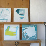 Die hier gezeigten Bilder zeigen Versatzstücke, Ausschnitte einer Landschaft. Es sind Spuren von Gesehenem, Erinnertem und laden den Betrachter ein, seine eigene Landschaft weiterzuspinnen. Die Originale sind mit Acrylfarben auf Holz gemalt und können wie Kacheln aufgestellt oder im Rahmen gehängt werden. Jedes ist 21x21cm groß und kostet 175,- Euro. Kontakt: martina-mair@gmx.de
