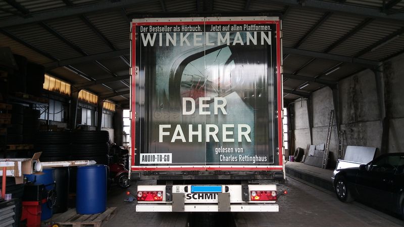 Sicherlich eine ungewöhnliche Maßnahme mit sogenannter Offline-Werbung für Hörbücher zu werben, die ja mehr und mehr digital verkauft werden, aber wir treffen damit natürlich Mitten in die Zielgruppe, denn nach wie vor machen Autofahrer einen wichtigen Teil der Hörbuchkundschaft aus. Und Werbeträger und beworbener Titel passen dann ja auch wie die berühmte Faust aufs Auge.