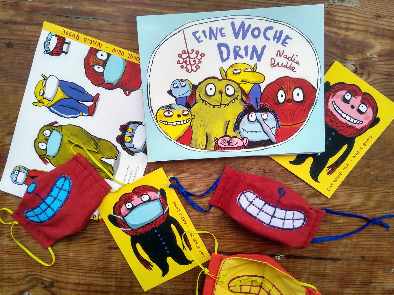 Eine Woche drin – Nadia Budde hat das Pappbilderbuch dieser Zeit geschaffen. Wir präsentieren es heute in unserer Reihe Schöner arbeiten im Home-Office – #bleibzuhausabermitkunst. Das Buch ist direkt bei der Künstlerin zu beziehen, mit oder ohne Maske. Außerdem gibt es schöne Drucke zu entdecken.