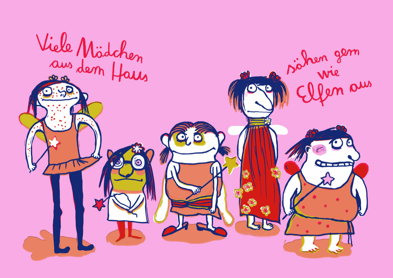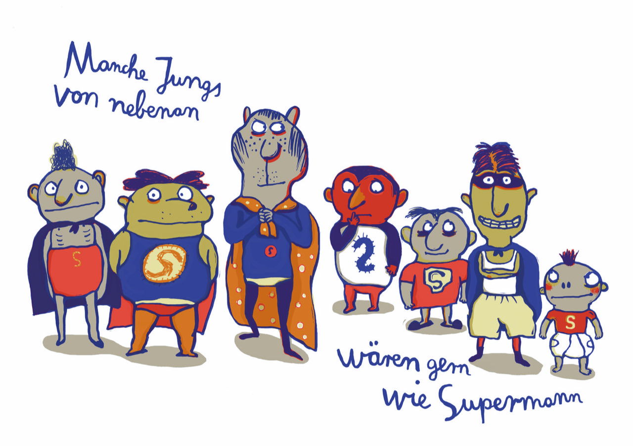 Außerdem bietet Nadia Budde Siebdrucke an. „Elfen“ ist ein Motiv aus Und außerdem sind Borsten schön (Peter Hammer), der vierfarbige Siebdruck im Format A1 kostet 50 Euro zzgl. Versandkosten. „Superjungs“ ist ebenfalls ein Motiv aus Und außerdem sind Borsten schön, der vierfarbige Siebdruck im Format A1 kostet 40 Euro zzgl. Versandkosten. Weitere Bilder finden Sie auf ihrer Website, auf der Sie auch direkt bestellen können.