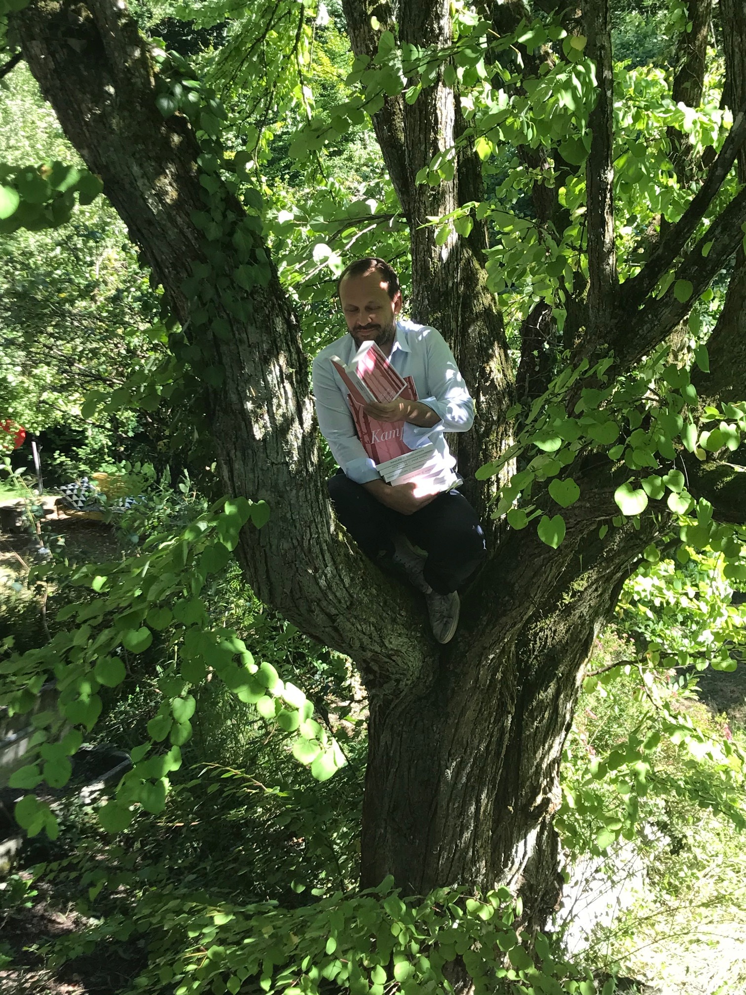 Einen etwas ungewöhnlichen Leseplatz hat sich Kampa-Verleger Daniel Kampa da ausgesucht.